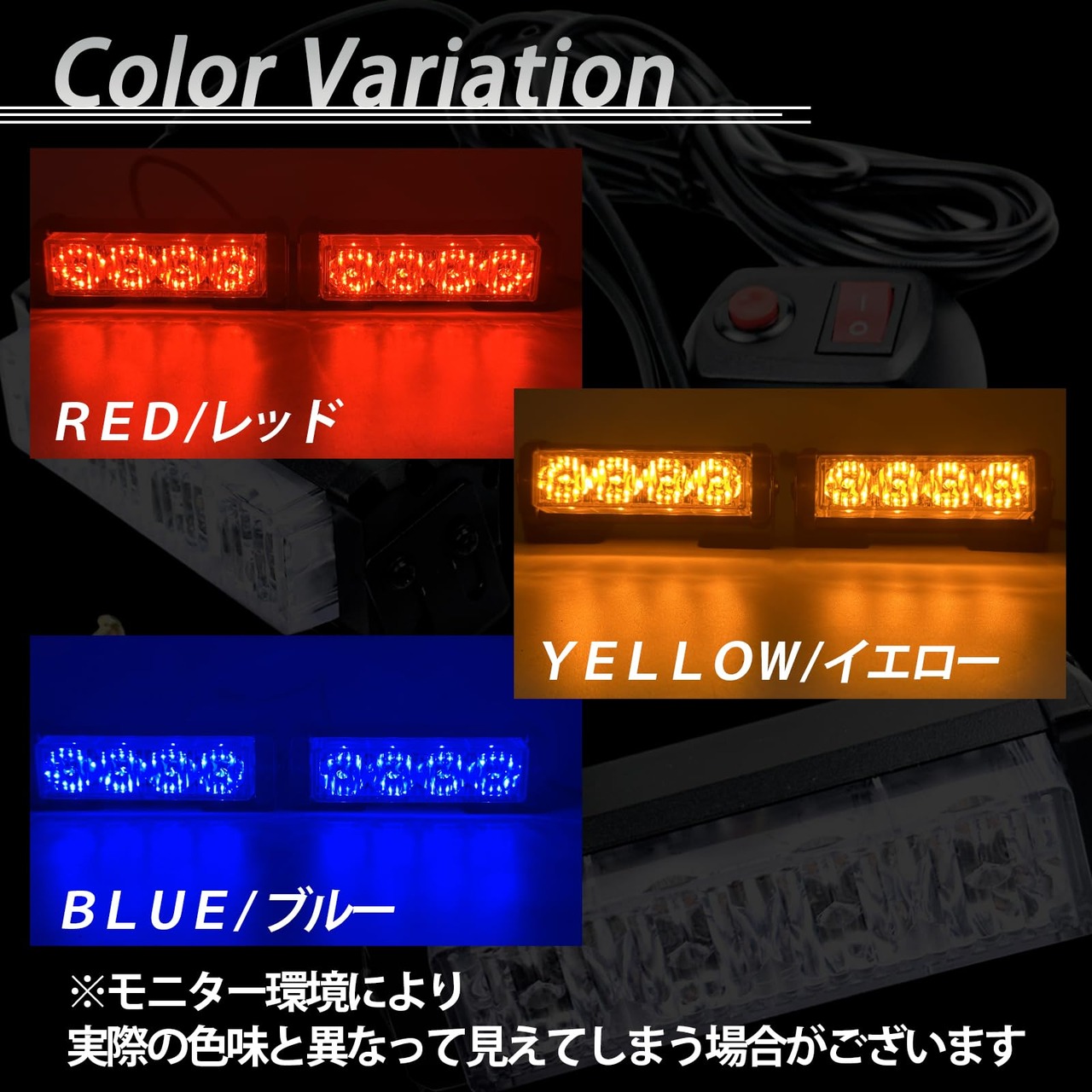 【セット内容】このLED警告灯は、イエロー・レッド・ブルーよりお選び頂けます、2個セットでの販売となります。これにより、より高い視認性と安全性を提供します。本体材質:アルミケースと樹脂レンズの組み合わせとなります。