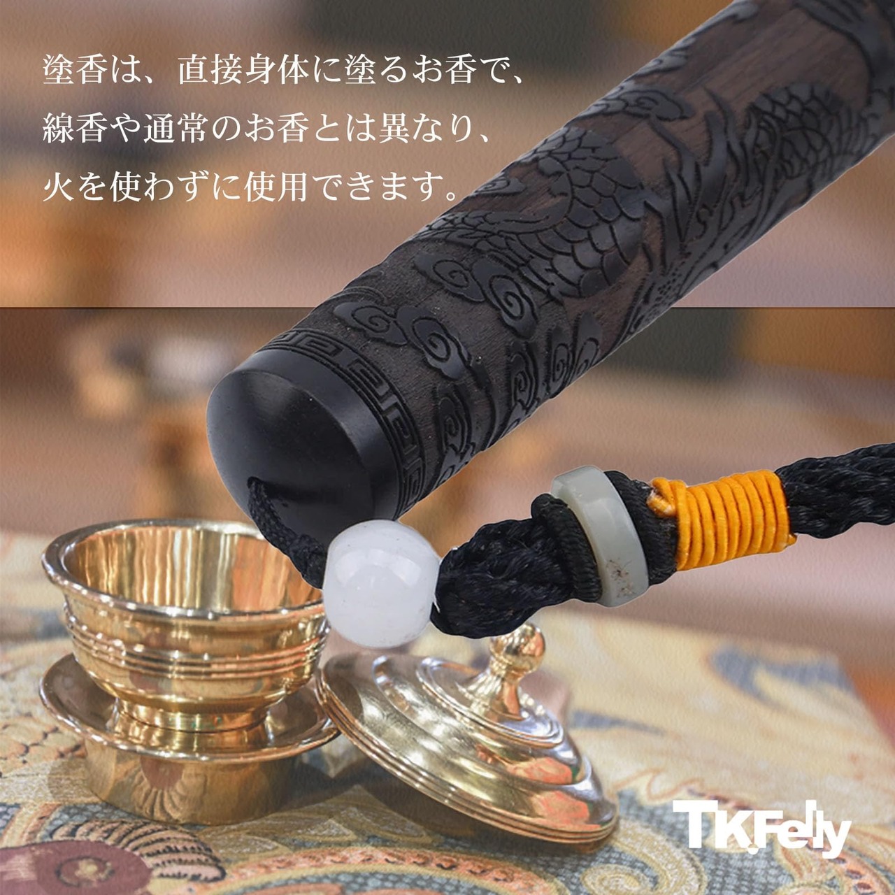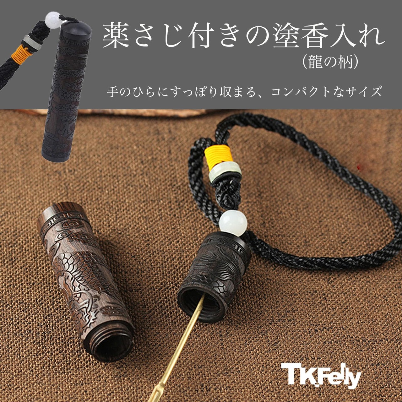 TK.Felly 塗香入れ 携帯 龍 塗香 ずこう ケース 携帯用 お香入れ お香 木製 黒檀 薬さじ スプーン付