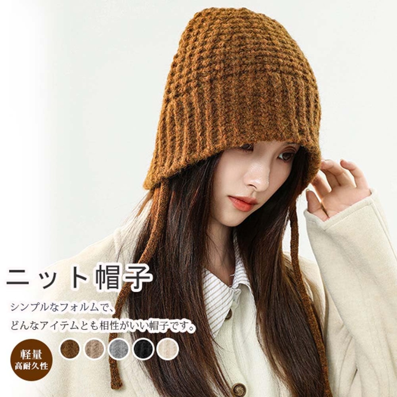 [Guoyupika] ニット帽子 レディース 秋冬 帽子 ニット帽 耳あて ニットキャップ ニット アウトドア キャンプ シンプル 暖かい おしゃれ 可愛い 小顔効果 防寒 カジュアル (オフホワイト)