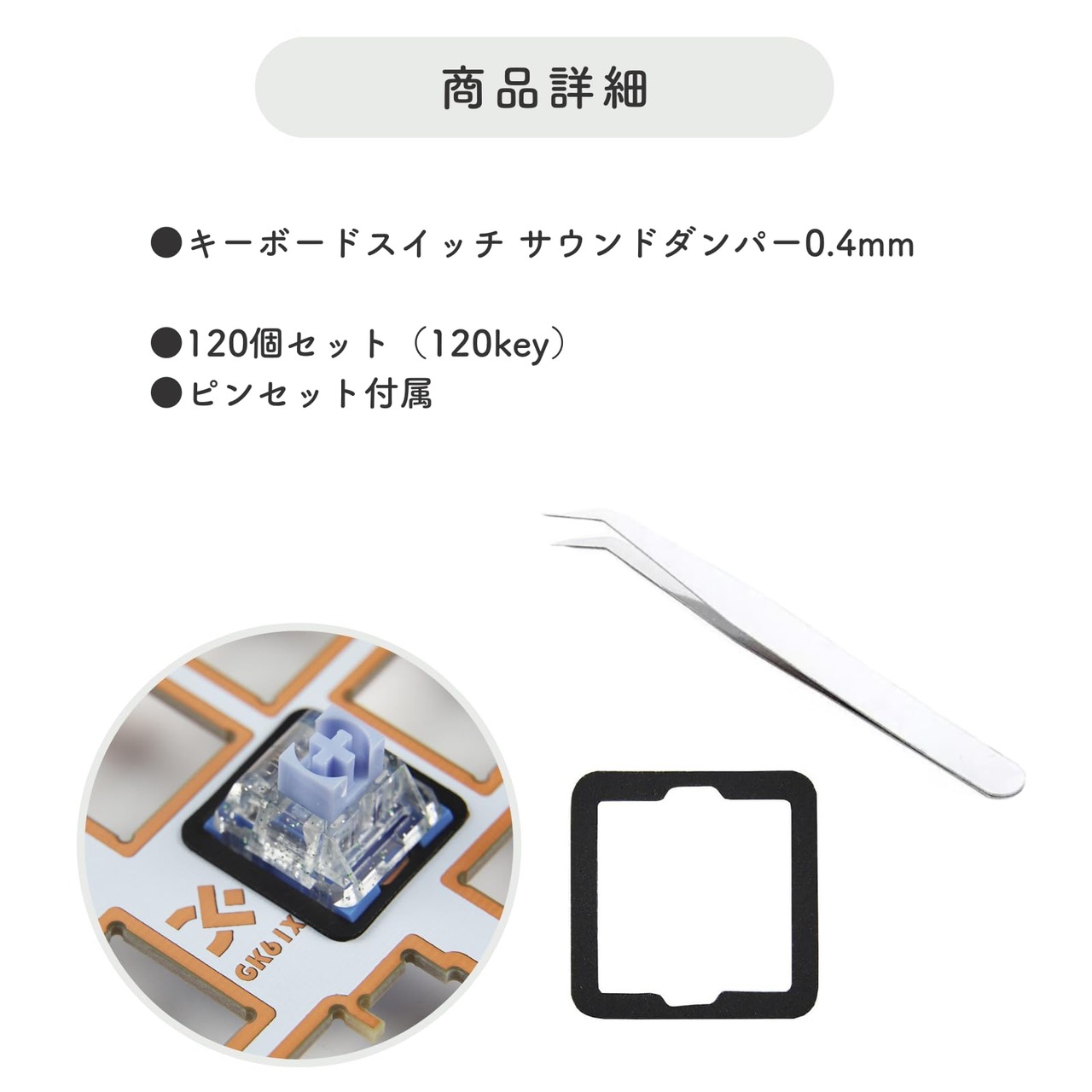 キーボード 静音化 シール PORONフォーム 120個入り ピンセット付属 メカニカル用 静音パッド サウンドダンパー キースイッチ 静音フォーム プレート表用 (0.4mm)