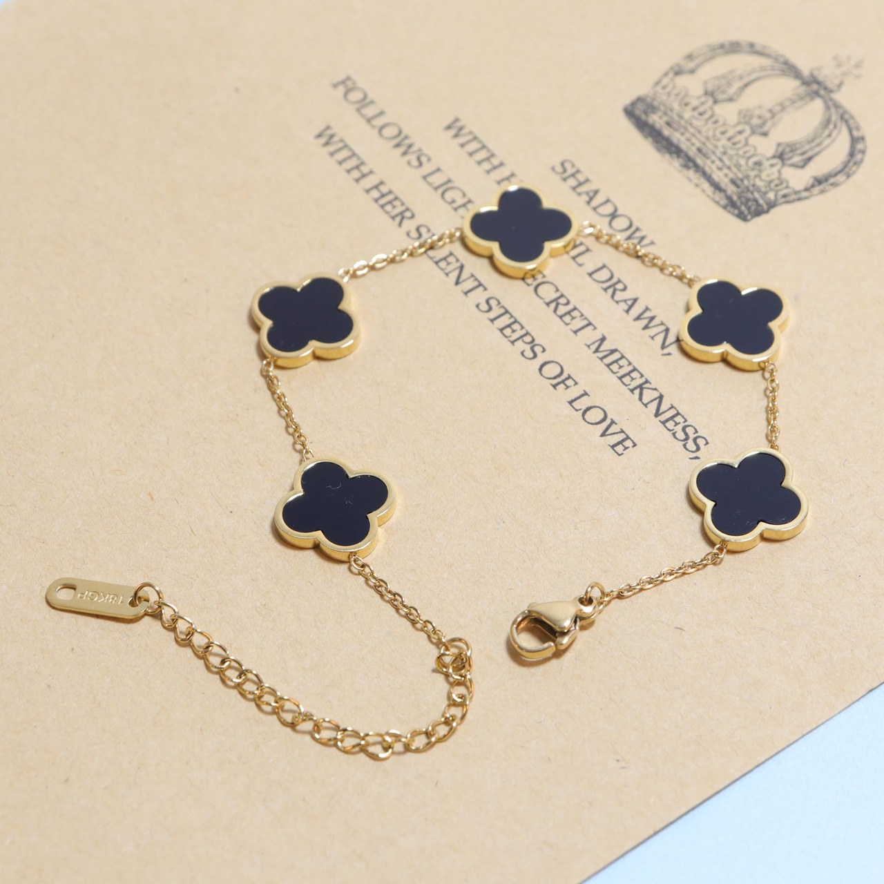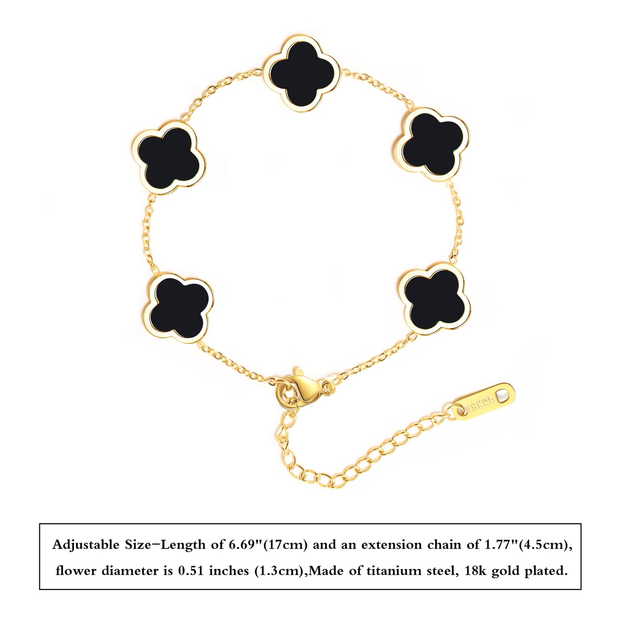 ユニークな四つ葉のクローバーブレスレット、女性用、ホワイト、ブラック、グリーン、レッド、ラッキーリンククローバーブレスレット、18Kゴールドメッキジュエリー、クリスマス、バレンタインデーのギフトに。, 6.49in, ステンレス鋼, 宝石なし