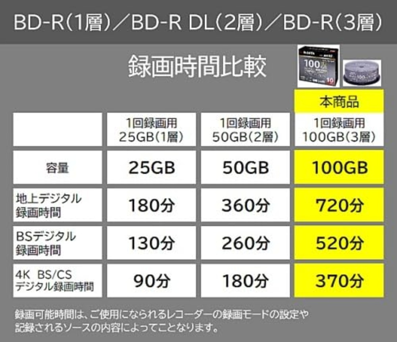1回録画用BD-R XL 100GB(片面3層)