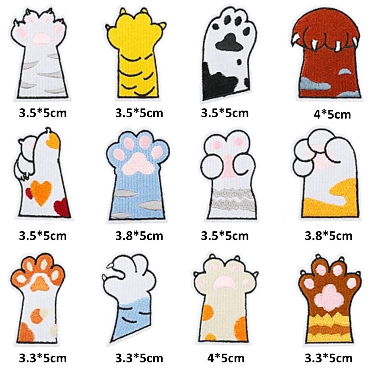 SAEYZ 動物 犬 ネコ アイロン ワッペン 接着 かわいい 動物の手 刺繍 アップリケ 保育園 かばん 服 小物 (動物の手 12枚)
