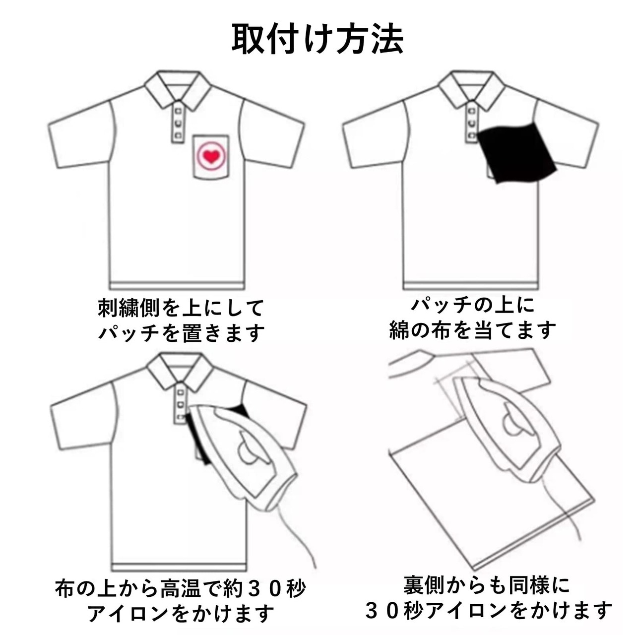 【幅広い用途】Tシャツ、上着、ジーンズ、かばん、バッグ、帽子、ポーチなどの飾り、服や小物の傷や裂けた部分としみがある部分を隠したい時にも大活躍です。