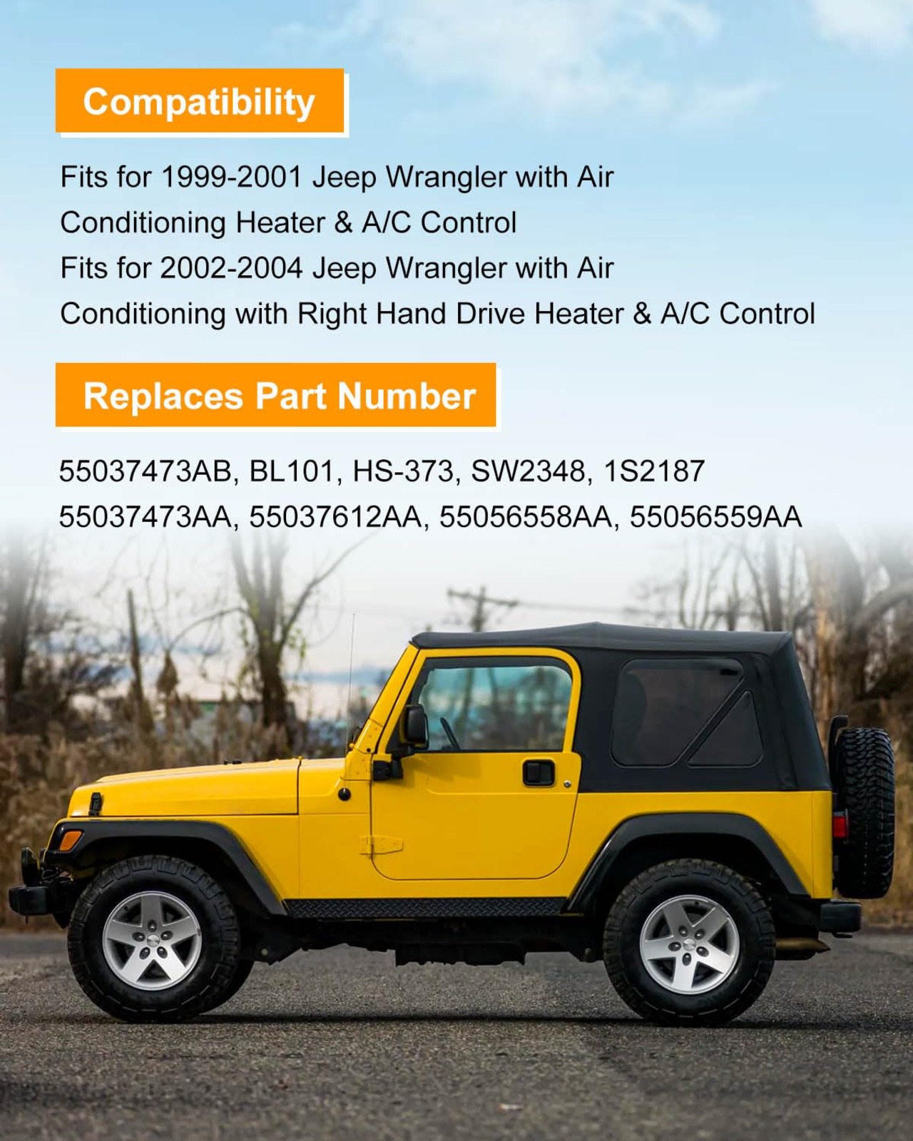 完璧な互換性:Wrangler 1999 2000 2001 エアコンヒーター&A/Cコントロール付き、Wrangler 2002 2003 2004、右ハンドルドライブヒーター&A/Cコントロール付きエアコンに対応。