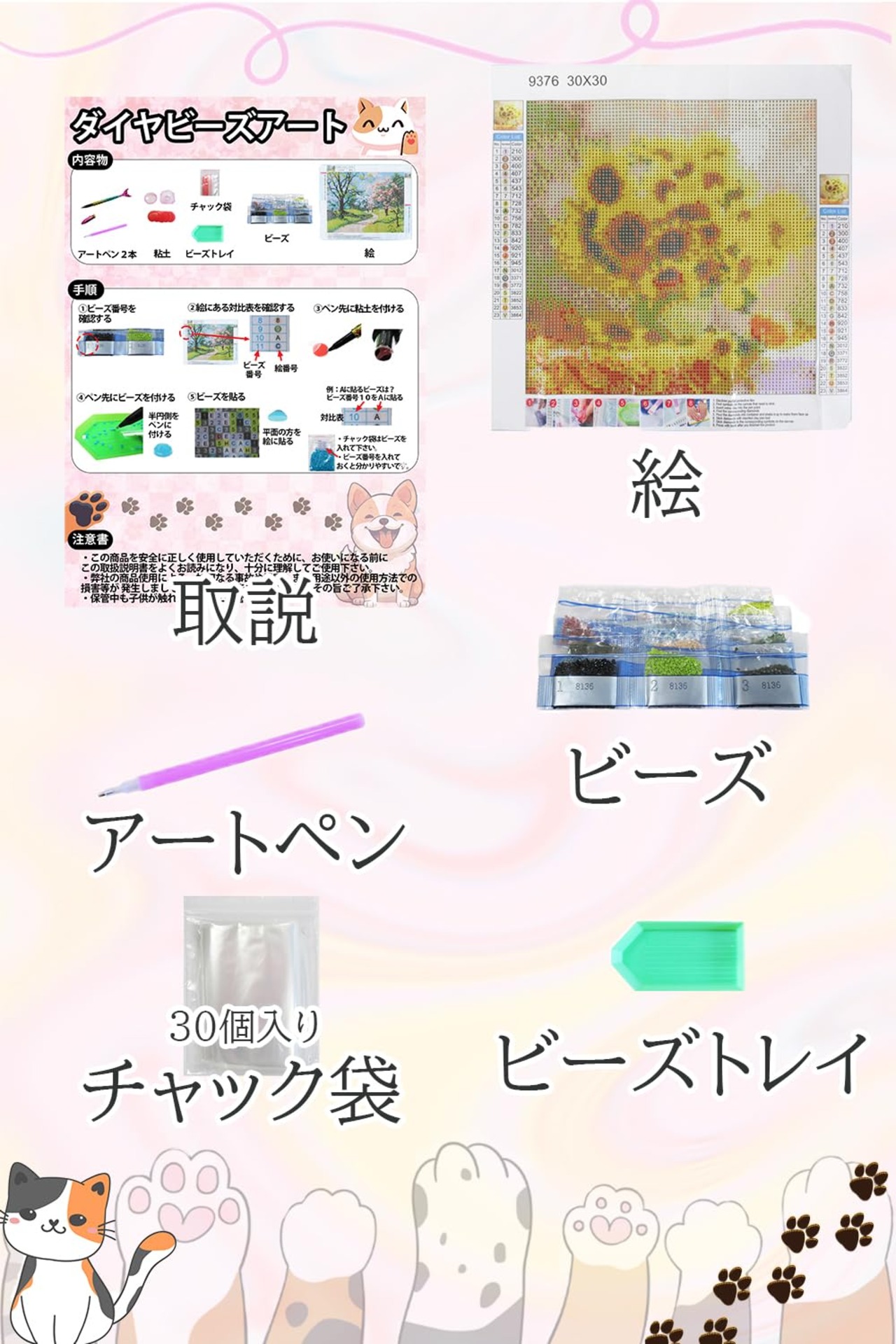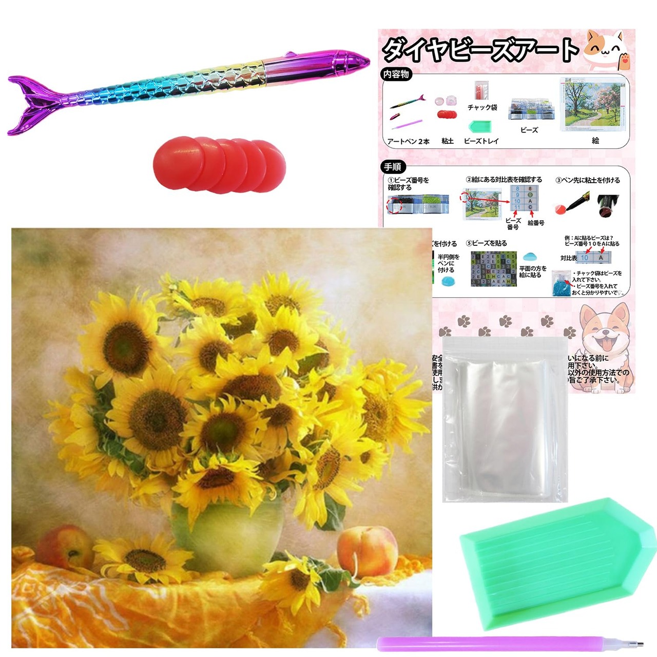 手芸工房 ダイヤビーズアート ダイヤモンド 塗装 キット ビーズ ペン 取説付き (ひまわり)