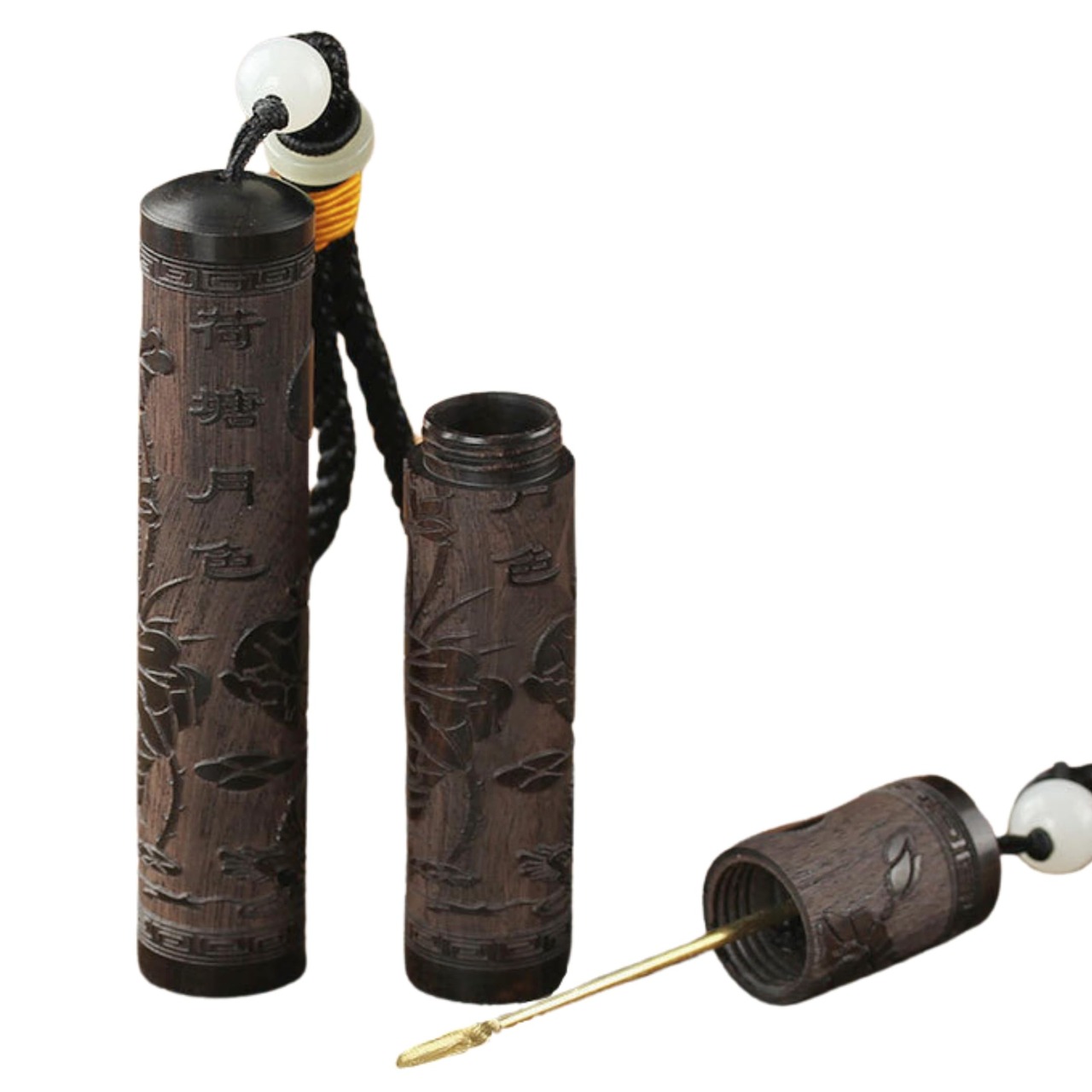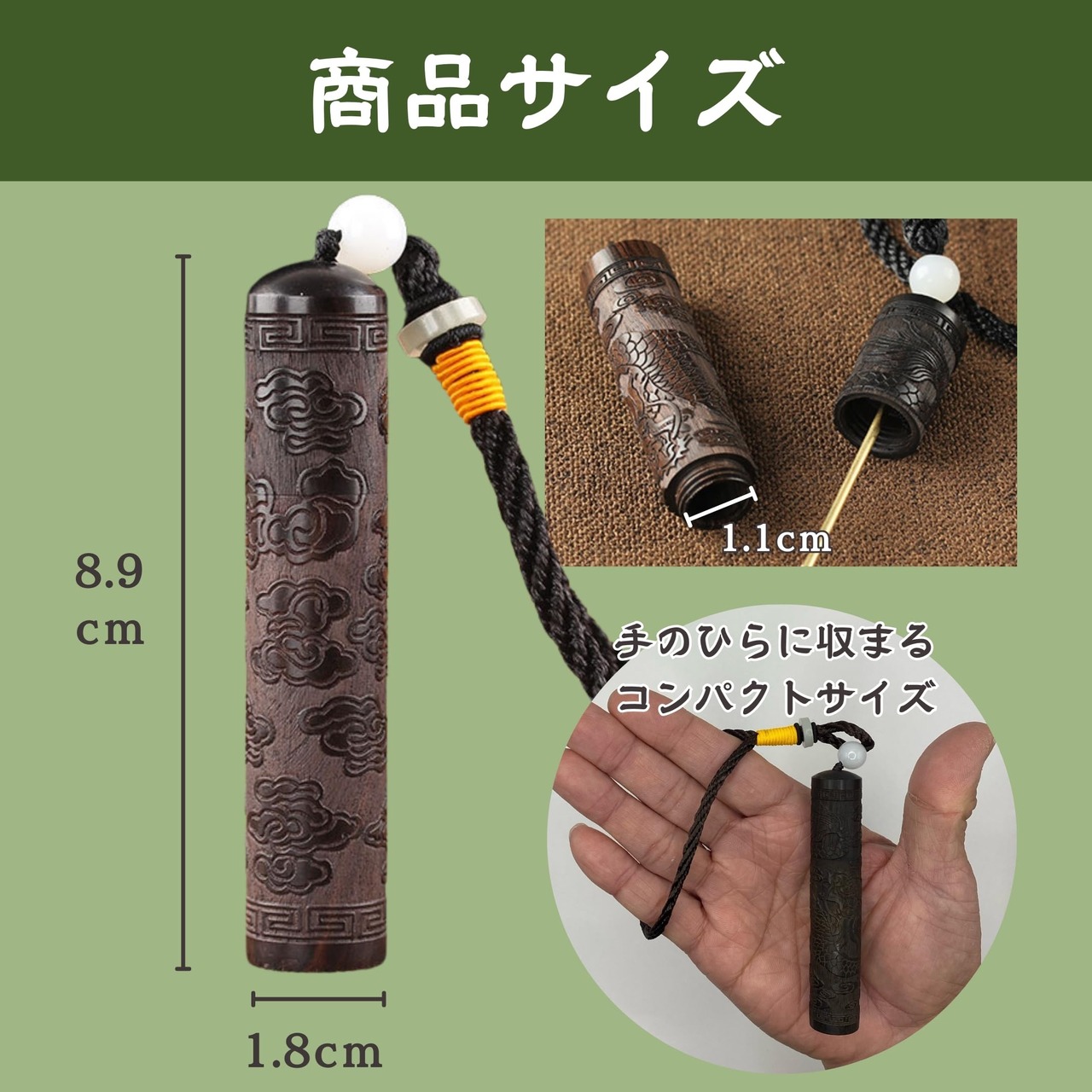 [HYmish]塗香入れ 薬さじ付き 直径1.8cm 塗香 薬さじ付き コンパクトサイズ 参拝 黒檀 ストラップ付き 荷塘月色