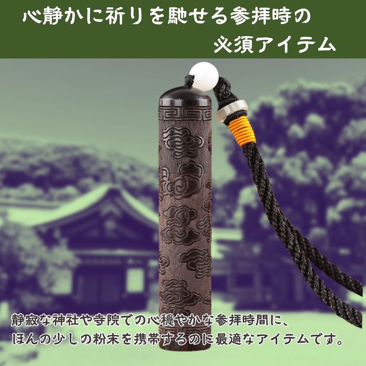 ✅落ち着いた風合いの黒檀で仕上げられたこの塗香入れは、参拝時の必需品を洗練されたスタイルで持ち運びできる逸品です。✅コンパクトサイズで、持ち運びにも便利です。巾着袋付きで、中身がこぼれる心配なく運ぶことができます。✅薬さじも付属しており、清めの儀式に欠かせない塗香を取り扱う際にも安心。✅手首用ハンドストラップ付きのデザインで、落下の心配なく参拝に集中できます。✅参拝の際だけでなく、日常使用にも適したこの塗香入れは、使うほどに手になじむ黒檀の味わいをお楽しみいただけます。