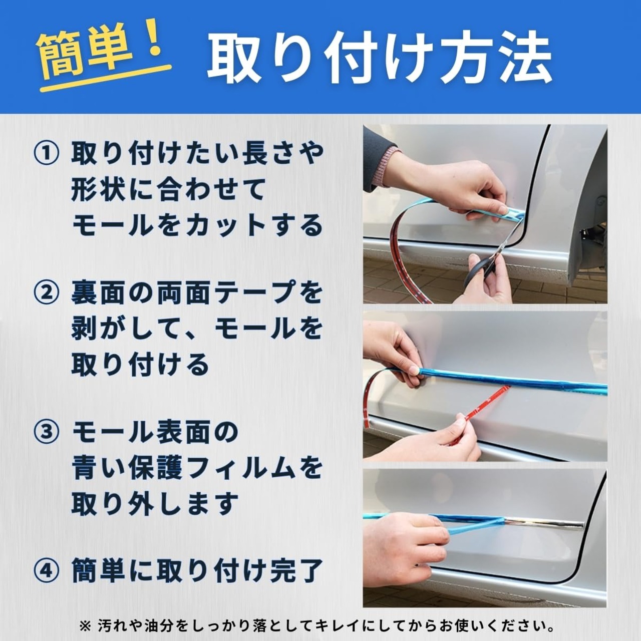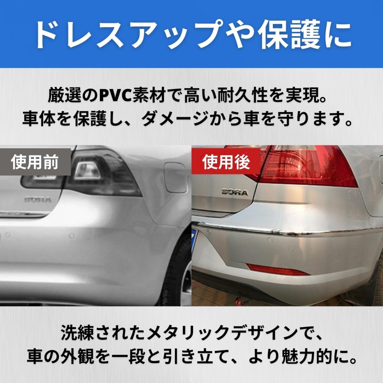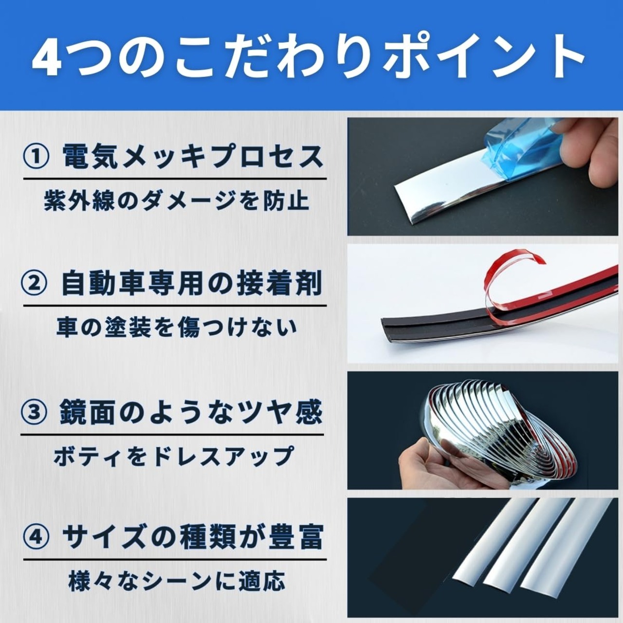 愛車のドレスアップ/ボディーの保護/キズ隠しに!メタリックシルバーのメッキモール!選べる3サイズ!長期間にわたって車体を保護し外部からのダメージから車を保護。スタイリッシュなカラーで愛車をグレードアップもしてくれます。愛車の雰囲気に合わせて手軽にコスパ良く保護やドレスアップしたい方へオススメです。