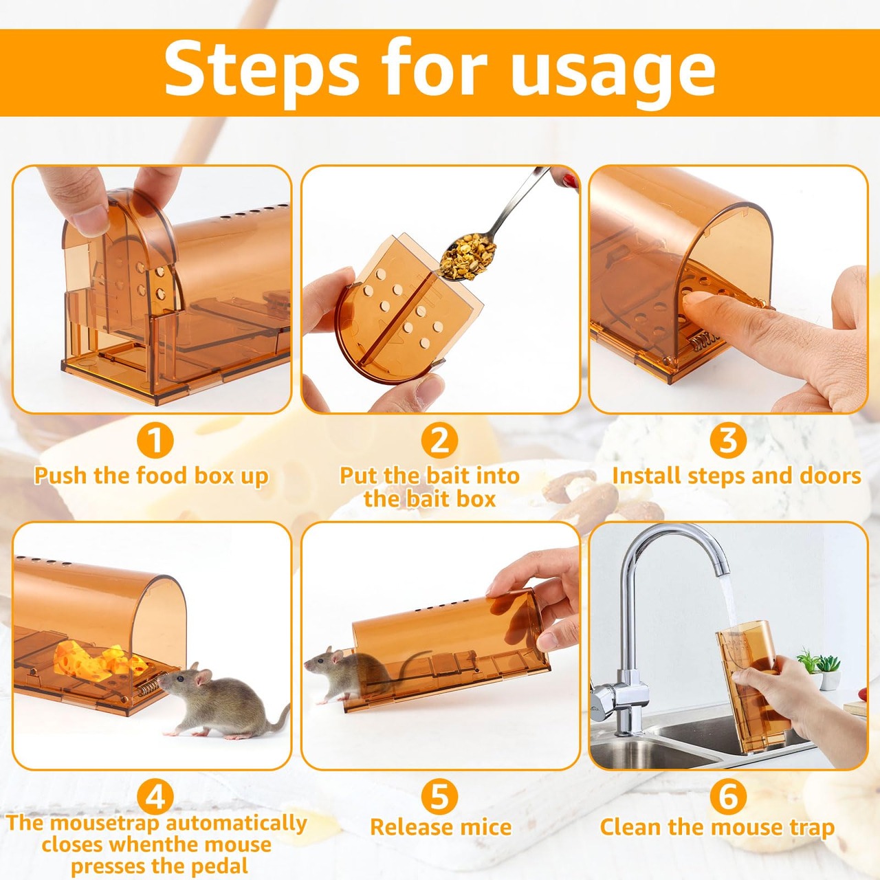 【ネズミ捕り使用方法】老鼠が隙間から逃げ出さないように注意してください!誘引剤を設置し、蓋を開けるだけで簡単に使用できます。誘引剤を誘引剤ボックスに入れ、ペダルとドアを装着し、よく出没する場所に置いてください。