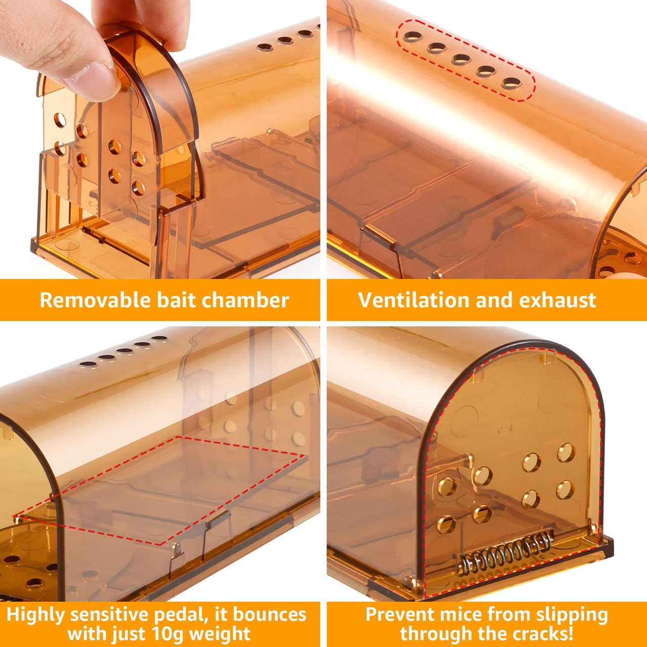 【使用の原則】ネズミ捕り敏感な足踏み装置と強力なスプリングのレバーシステムを使用して、足踏み板に乗るだけで自動的にドアが閉まります。一度ネズミが箱に入り、足踏み板に触れると、装置が作動し、ネズミを捕獲するため、ネズミは逃げることができません。また、清潔で簡単に使用することができます。