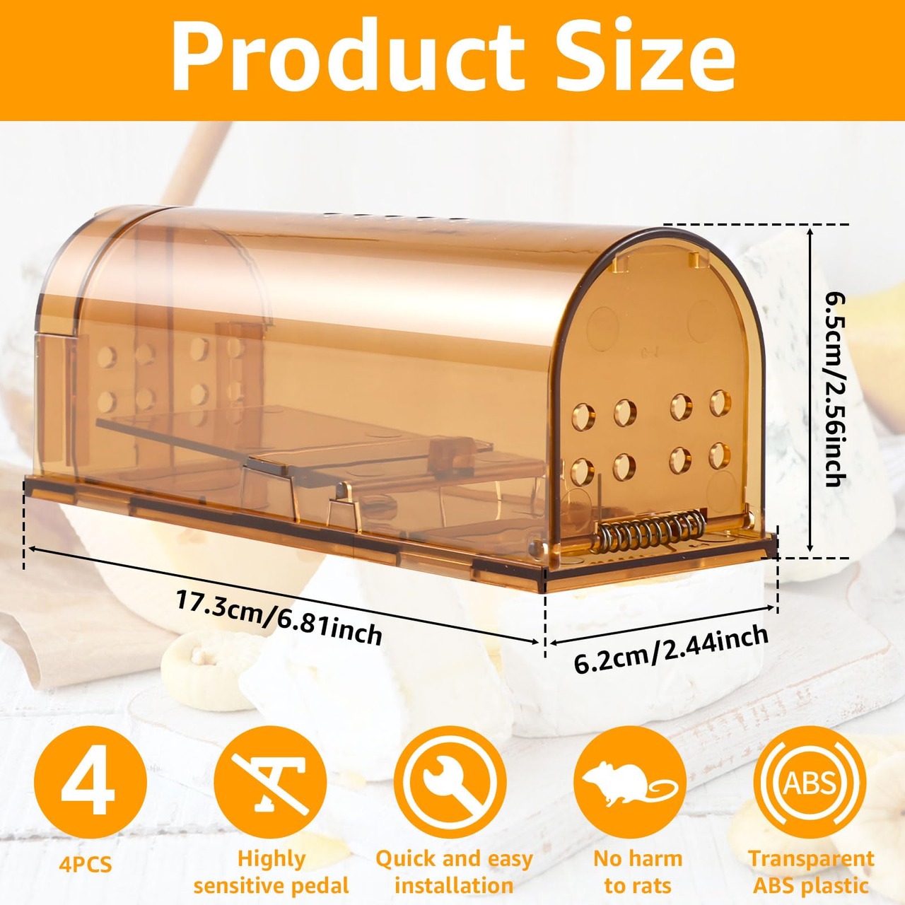 【サイズ】4個のネズミ捕りのサイズ(約):17.3cm×6.2cm×6.5cm、重量(約):550g。全長17cmで、「最大15cm」の長い尾を持つネズミでも捕獲できますので、今回は逃げられません。何かご質問があれば、お気軽にお問い合わせください。