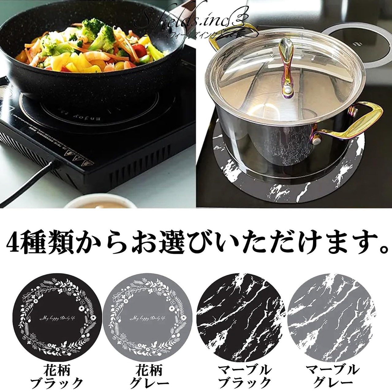 IH用マット2枚セットです。花柄ブラック、花柄グレー、マーブルブラック、マーブルグレーの4種類からお選びいただけます。