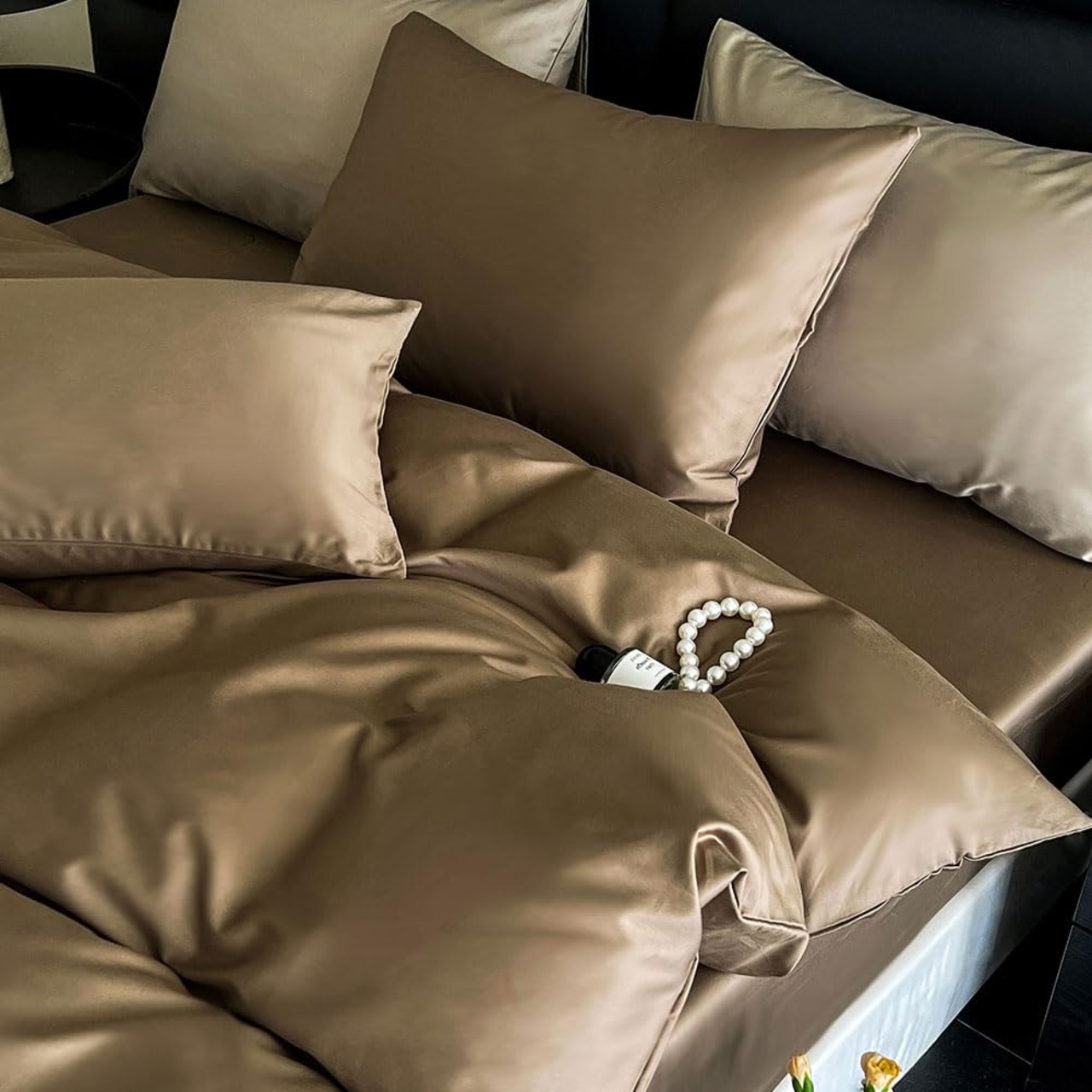 掛け布団カバー ダブル 綿100% サテン織り 100番手双糸 超長綿 400本高密度生地 ホテル仕様 防ダニ 掛けふとんカバー ふとんカバー 布団カバー シルクのような肌触り 北欧 滑らか 柔らかい (190x210cm, ショコラブラウン)