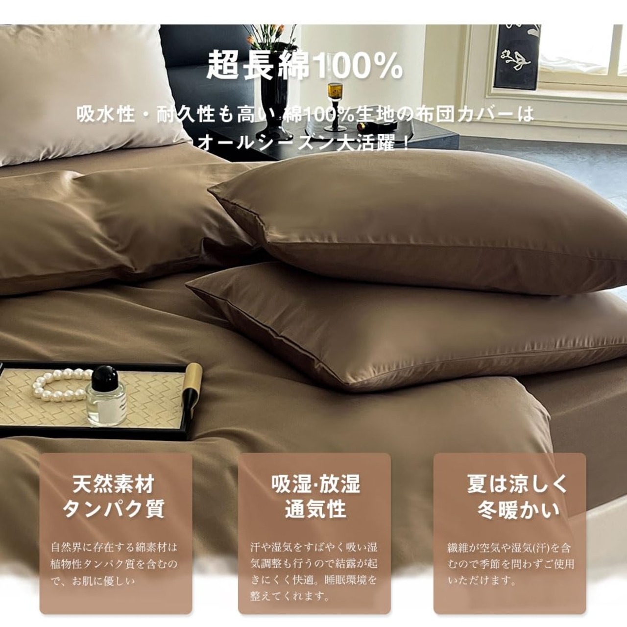 【ホテル仕様の贅沢掛けふとんカバー】:厳選素材と厳格な品質にてできたホテルのような贅沢な寝心地をご自宅にて体験。ぜいたくで品質の良い仕上げと耐久性で、長く愛用していただけます。超長綿を使用した贅沢な布団カバーで、やわらかくてしなやかな風合いがお肌にもやさしいオールシーズン快適な寝具環境に近づけてくれます。耐久性と柔軟性を兼ね備えた極上の寝心地を実現します。