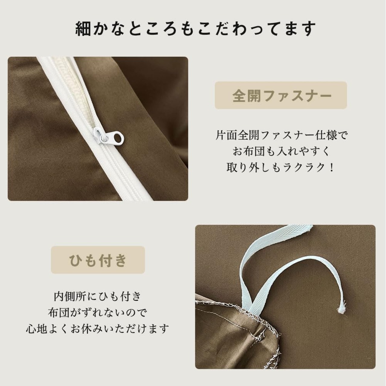 【仕様】:片側ファスナー使用,布団留めひも8ヶ所。素肌に触れるのに最適な100%コットン製サテン仕上げのふとんカバー。優しくふんわりとした肌ざわりに優れた通気性と柔軟性で、快適な睡眠求める方におすすめです。