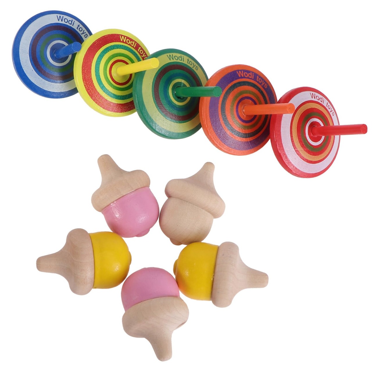 LIOOBO 10個 手回しコマ 木製 こま コマ 木製 こま 子供 おもちゃ ランダムカラー(カラフルコマ5個+どんぐりのこま5個)