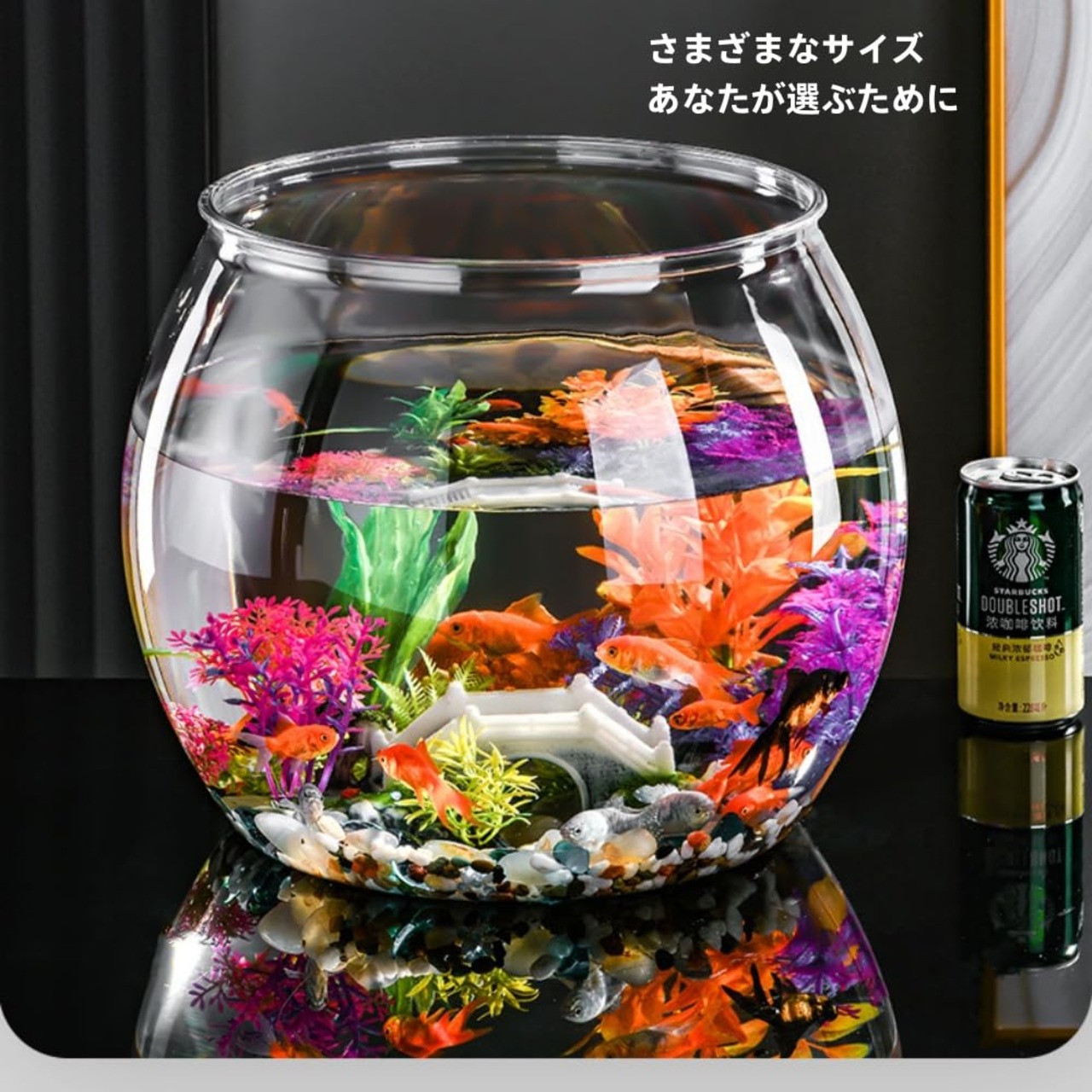 多様な用途:この水槽は金魚鉢や水族館の餌ボウルとしても活用できます。透明な材質で水槽の中の魚や植物を観察しやすく、家の中に生活の息吹を持たせることができます。