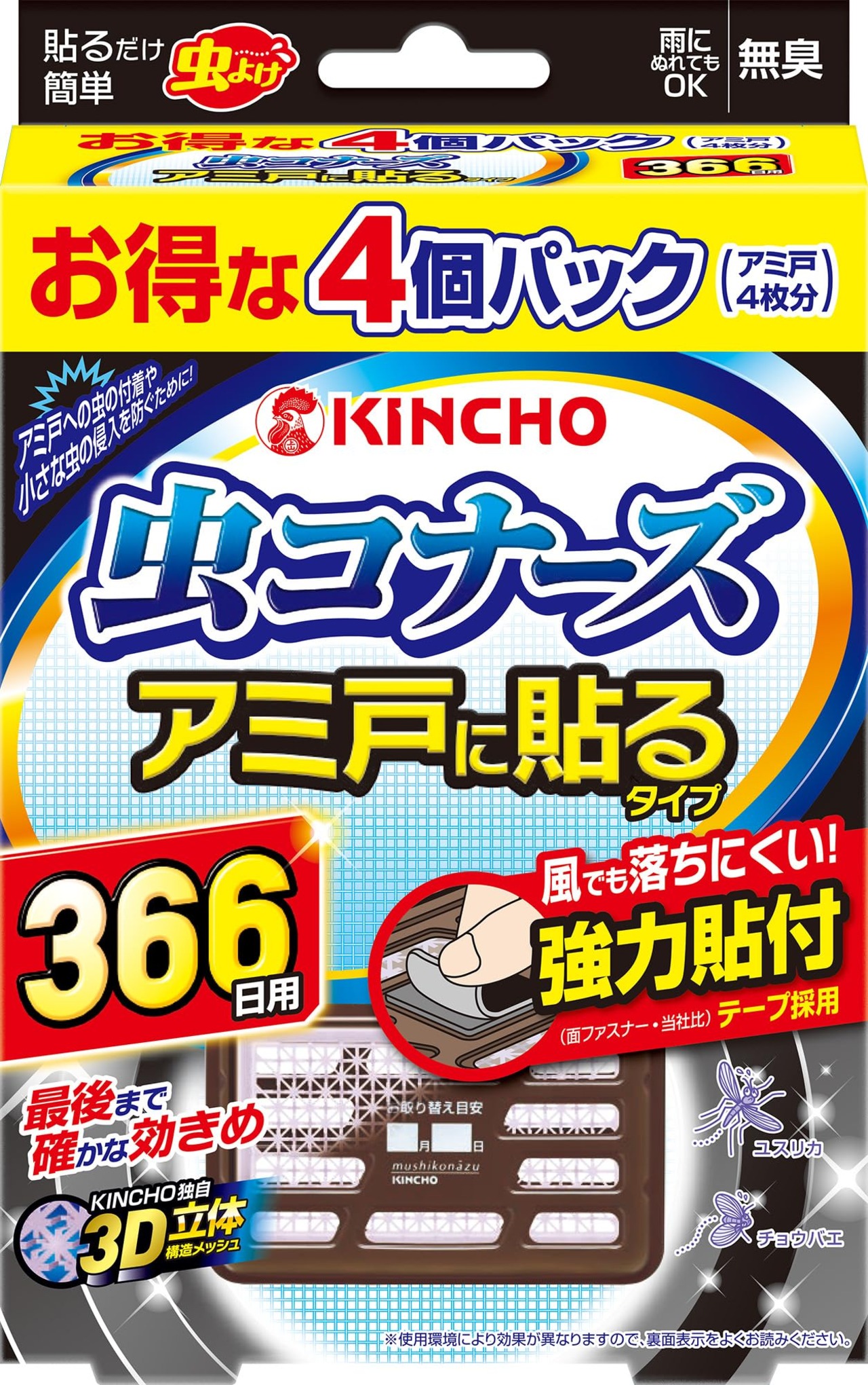 虫コナーズ アミ戸に貼るタイプ 網戸用虫よけ 366日 4個入 無臭