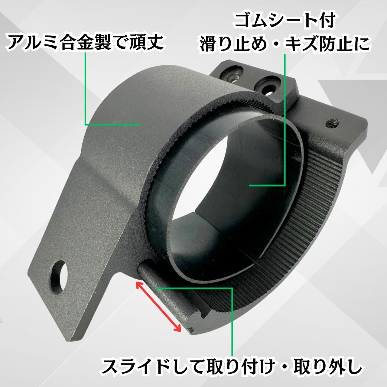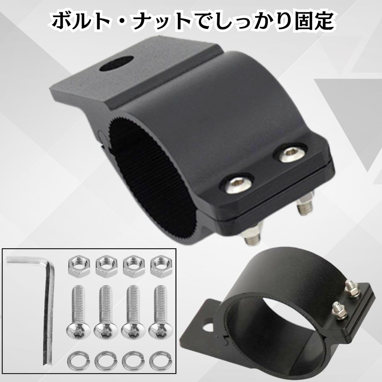 フォグランプやバーライト、アンテナなどを取り付ける事ができるステー2個セットです。車のバンパーやパイプ、グリルガード、ルーフラックなどに設置可能です。 ゴム製のシートを付属しております。ゴムシート巻くことで、滑り止め・傷防止の効果があり、振動からライトを守ります。 ブラケットをスライドして分割し、ブラケットにパイプとゴムシートを挟み、付属のボルト・ナットを締めることで簡単に設置できます。 サイズはφ40〜45mm、φ49〜54mm、Φ66~71mm、φ76~81mmの4種類ございます。取付箇所のサイズに合わせてお選びください。 様々なオフロード車に対応し、ジムニー、ランクル、デリカ、ラングラー、トラックなどでご利用可能です。また、ガレージや作業場などでのワークライトや作業灯の取り付けにも最適です。