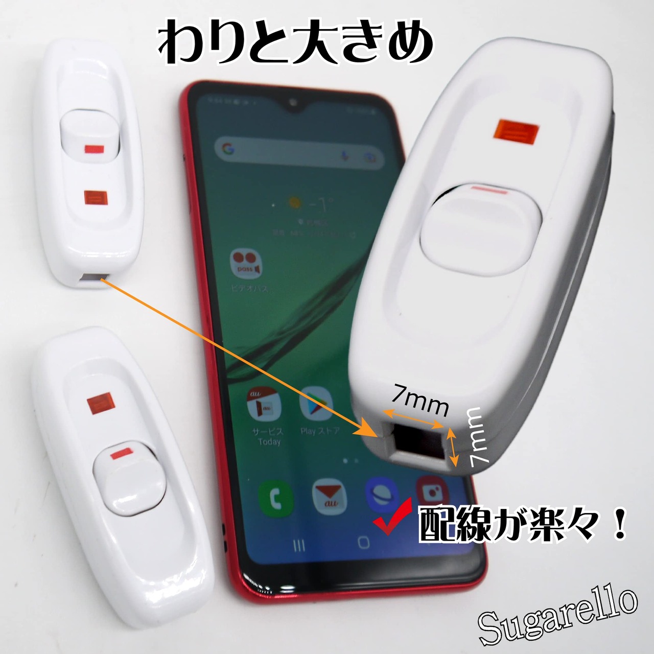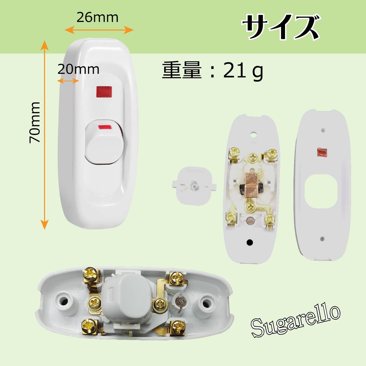Sugarello 中間スイッチ インライン ランプ付き ON/OFF スイッチ 照明器具 換気扇 手元スイッチ 増設用 シーソースイッチ AC 250V 10A 片切スイッチ ホワイト 2個セット