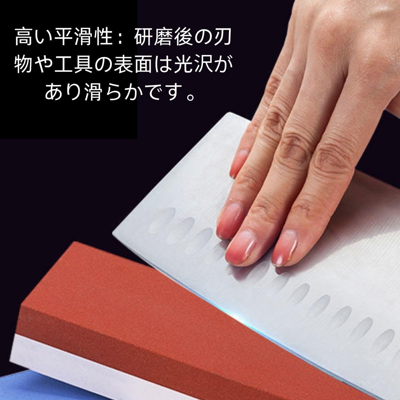 高品質な両面砥石セット:粒度5000/10000目の仕上げ用砥石を組み合わせ、砥粒が細かく、効率的に砥磨作業を行うことができます。 - 優れた素材と加工技術:高品質な素材を使用し、砥石から取り出される砥粒がきめ細かく、スムーズな仕上げ作業を実現します。作業効率を向上させるため、研磨時間を短縮することができます。 - 長期間使用可能な耐久性:耐久性が高い砥石素材を使用しており、長くお使いいただけます。研磨効率が落ちにくいため、持続的な研磨作業を実現します。 - 高い平滑性:研磨後の刃物や工具の表面は光沢があり滑らかです。砥石を使用して磨くことで、研磨後の平滑性を高め、鋭利さを長持ちさせることができます。 高品質の砥石素材を使用しており、長期間にわたって使用可能です。耐久性が高く、頻繁な研ぎ直しにも対応できるため、経済的で環境にも優しい製品です。