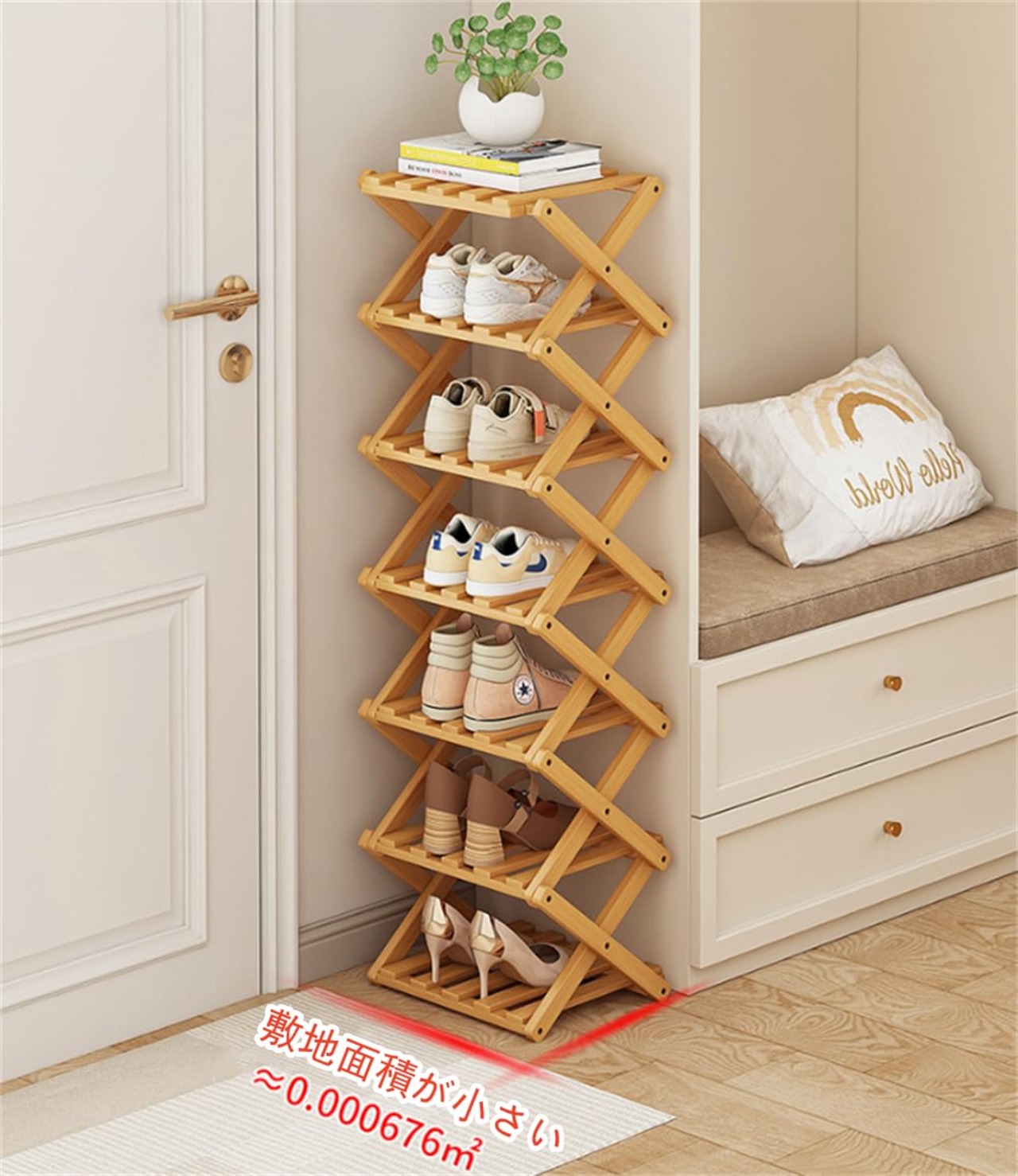 シューズラック 玄関 スリム 靴棚 折り畳み 靴箱 靴収納 下駄箱 靴入れ 省スペース 組立不要 竹製 コンパクト おしゃれ 便利 すき間 幅26cm 屋内 屋外 多用途
