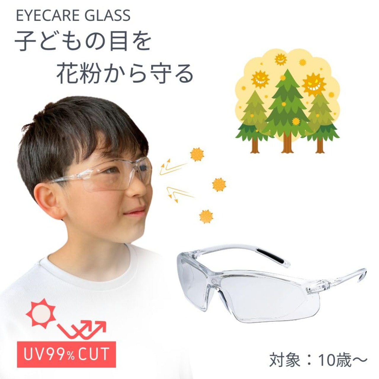 【ジュニア花粉対策メガネ】10歳~の約2人に1人は花粉症と言われています!!<br> 花粉保護メガネで目の粘膜に花粉を付着させないことが大事!