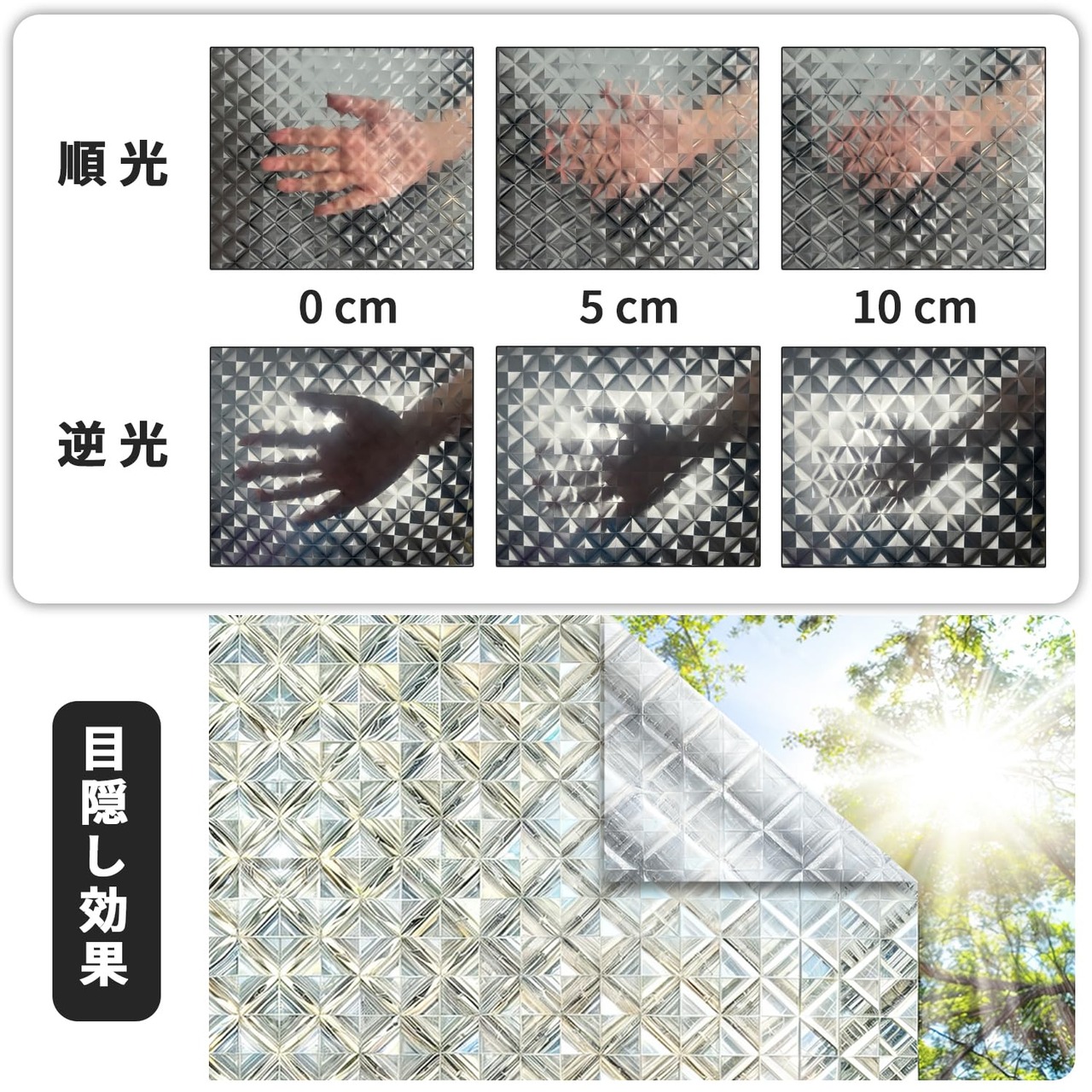 DARUITE 3D正方形 窓ガラスフィルム 目隠し シート 窓 めかくしシート ガラスフィルム 窓 水貼り 剥がせる 窓 フィルム 断熱 遮熱 UV 紫外線カット 結露防止 玄関 目隠し窓シート おしゃれ 飛散防止(44x200cm)