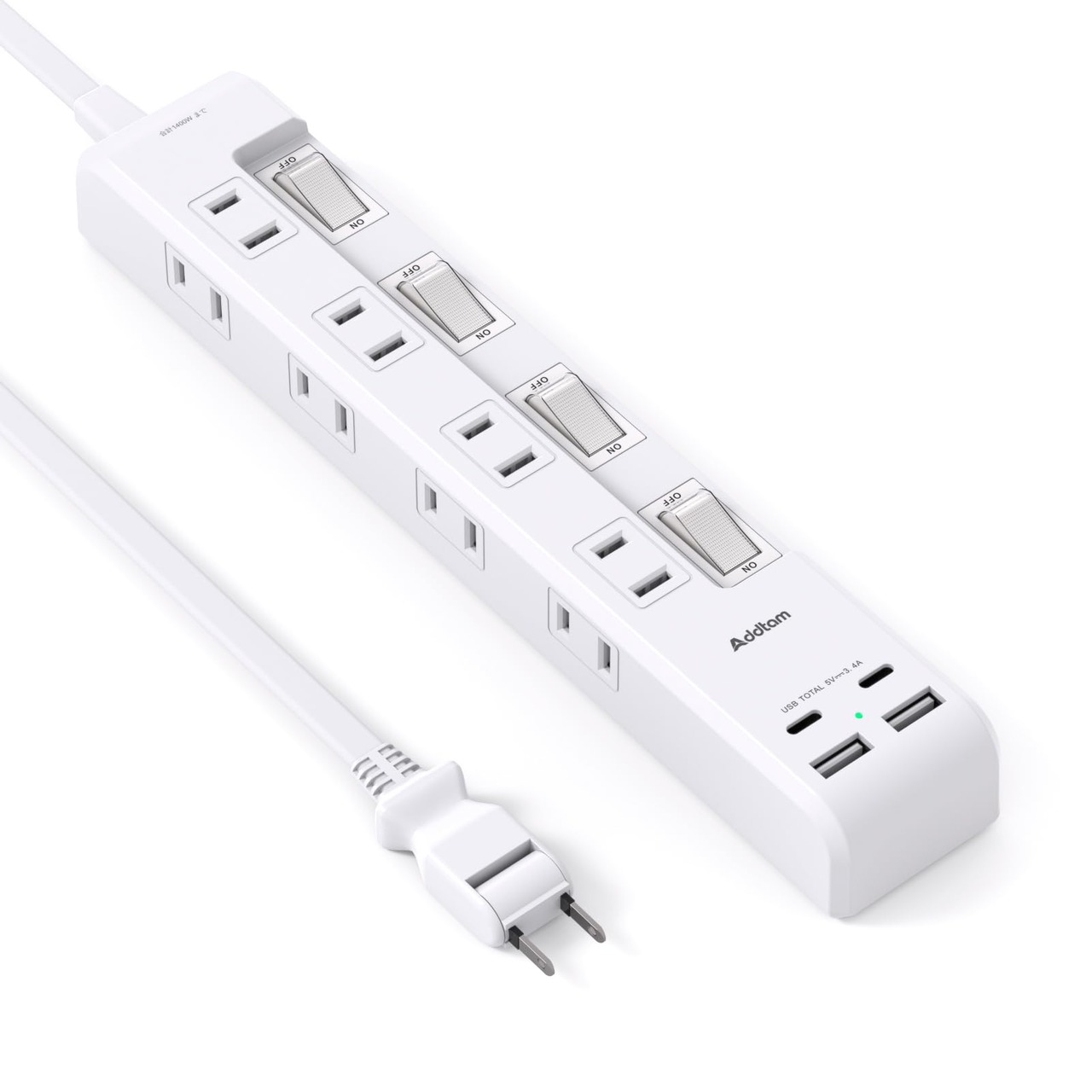 【12-in-1電源タップ&2Type-Cポート】8つのAC差込口、2つのUSB-Aポート、2つのUSB-Cを備えた電源タップ。 最長辺はわずか約7cmで、コンセント間の干渉を防ぐため、前面、側面に一つ宛ACコンセントが付いています。新販売の携帯電話に対応するためにtypeCポートも特別に追加されており、typeCポートの充電ヘッドを購入する費用を節約できます。USBポート付だからアダプタ不要で、省スペースでスッキリにします。出張、会議室、自宅などで12台デバイスを充電できます。