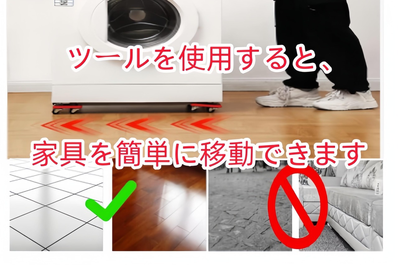 四隅に付属の台車を設置すれば簡単に移動ができます。大掃除や模様替えなど家具を動かすシーンに欠かせない、一家に一台のマストアイテムです。