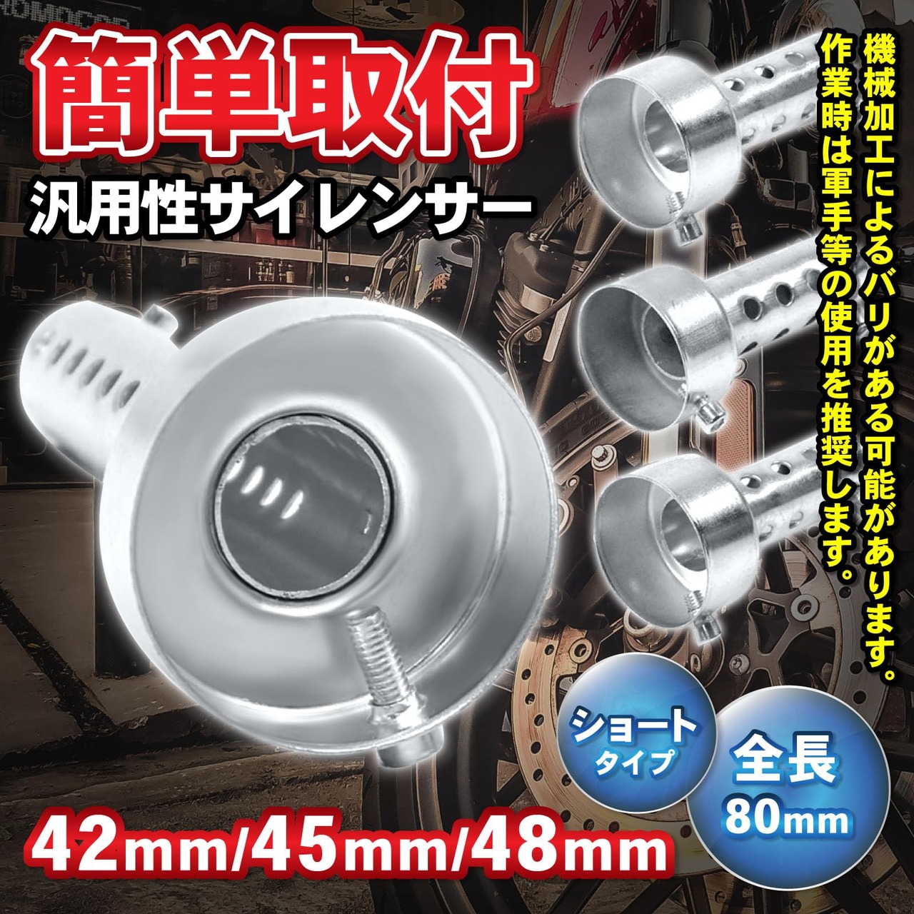 ✅汎用品の為、口径が合う車種には使用可能です。アメリカン、スポーツ、ネイキッド、原付など様々なバイクに使用頂けます。※マフラーにサイレンサー取付用の穴がない場合は、穴あけの加工が必要になります。