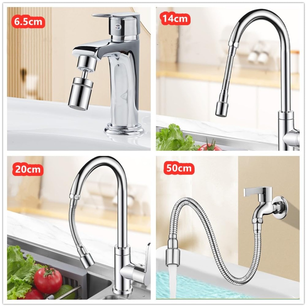 【360度回転&固定】蛇口シャワーは360度回転可能で、水流の向きを自由に調整できます。任意の角度で固定できるので、皿や野菜、果物を両手で洗うことができます。便利で柔軟性があり、時間を節約できます。