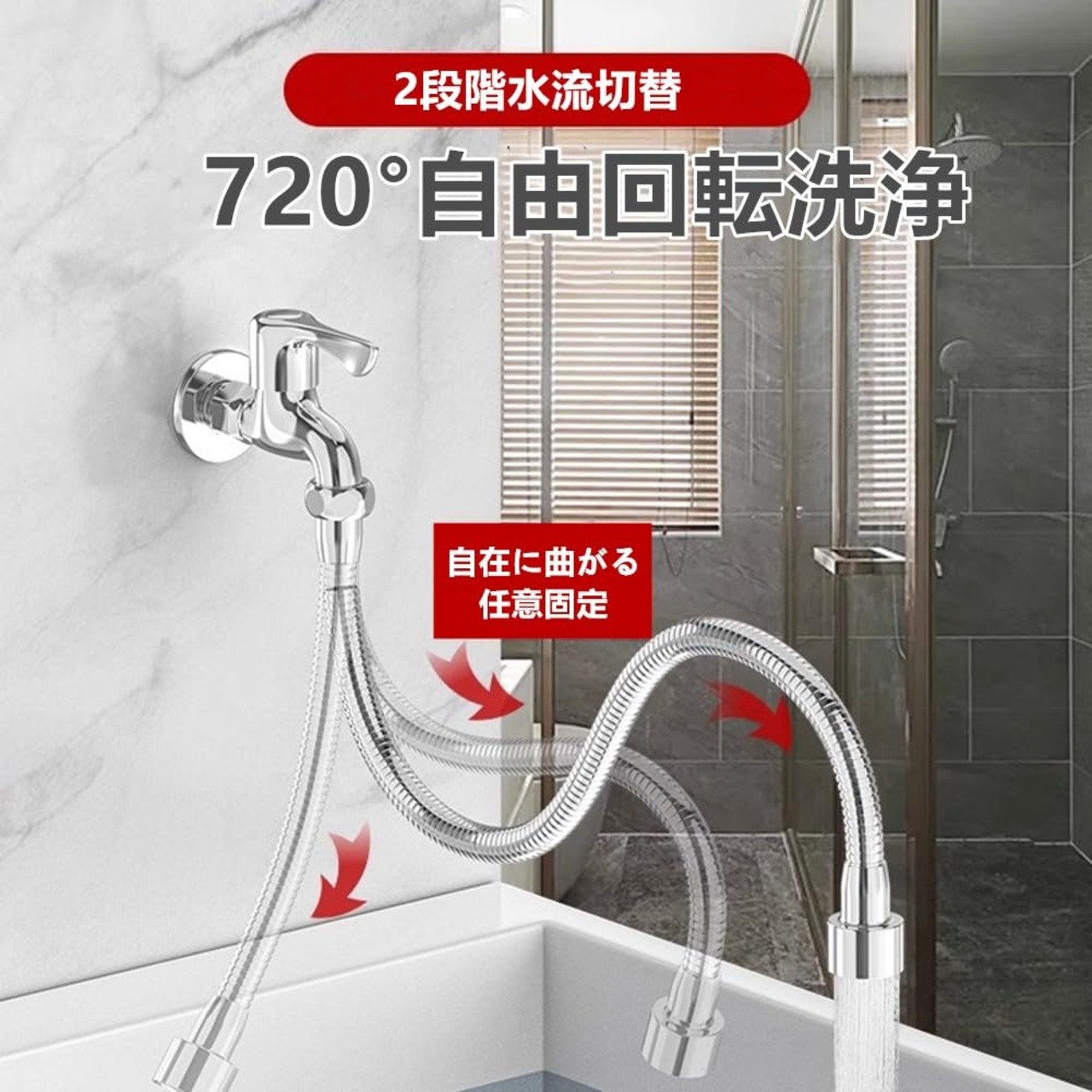 蛇口 延長 シャワー 水道 蛇口 延長ホース 2段階水流切替 節水ノズル 360度回転 自在に曲がる 任意固定 水漏れ防止 節水シャワーヘッド キッチン 浴室 洗面所 蛇口延長チューブ 蛇口先端部品 ステンレス製 ネジサイズG1/2 取り付け簡単 冷熱通用 アダプターアダプター付き (30CM)