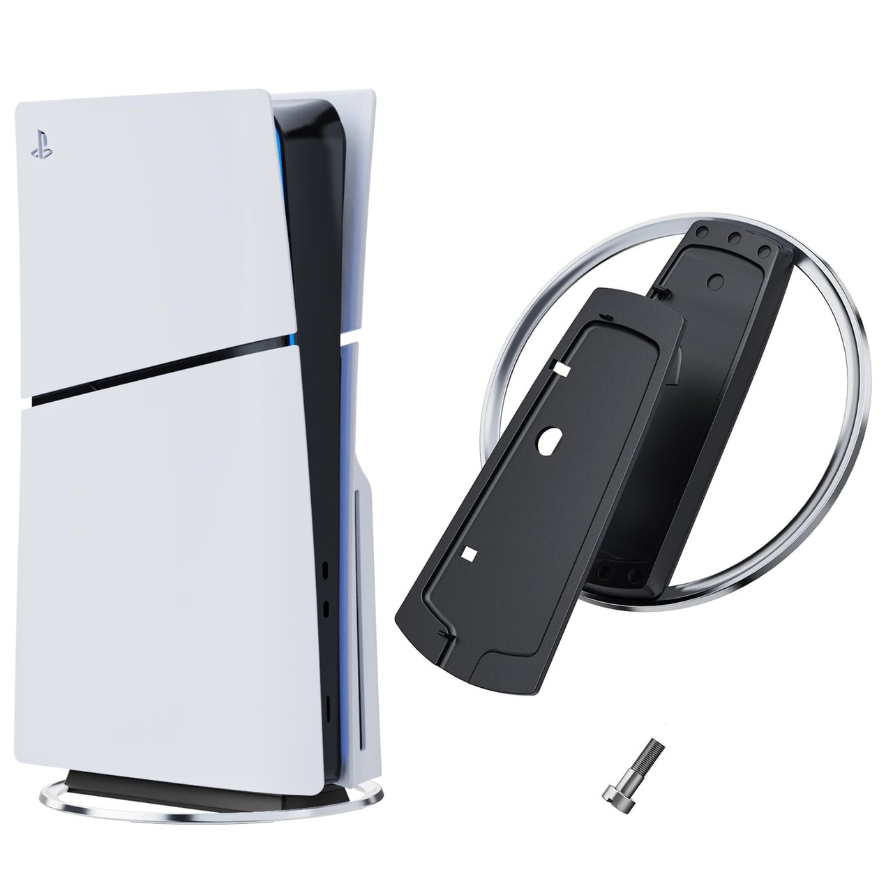 【PS5/PS5 Slim/PS5 Proスタンド】PS5 Slim Disc&Digital / PS5 Disc&Digital / PS5 Pro用の縦型ドックスタンドです。底面には滑り止めのシリコンリング、本体固定用のネジが付属。これにより、PS5コンソールへの意外なぶつかりによる落下を防止し、コンソールを安定した位置に維持します。