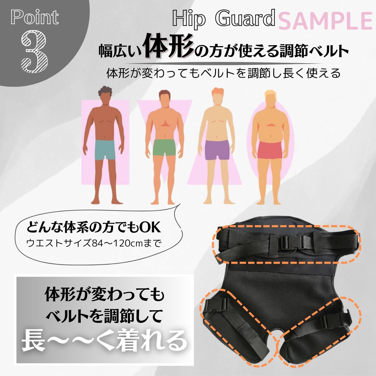 【簡単装着】ヒッププロテクターはバックル式で着脱ラクラク!釣りやアウトドア、スノボやバイクなど、アクティブなシーンでサッと装着できます。サイズ調整も可能でウエストも約84から120cmまで対応でき、しっかりした着け心地を実現できます。