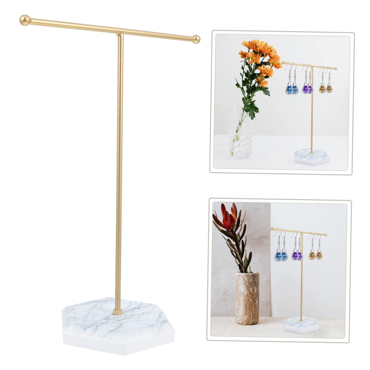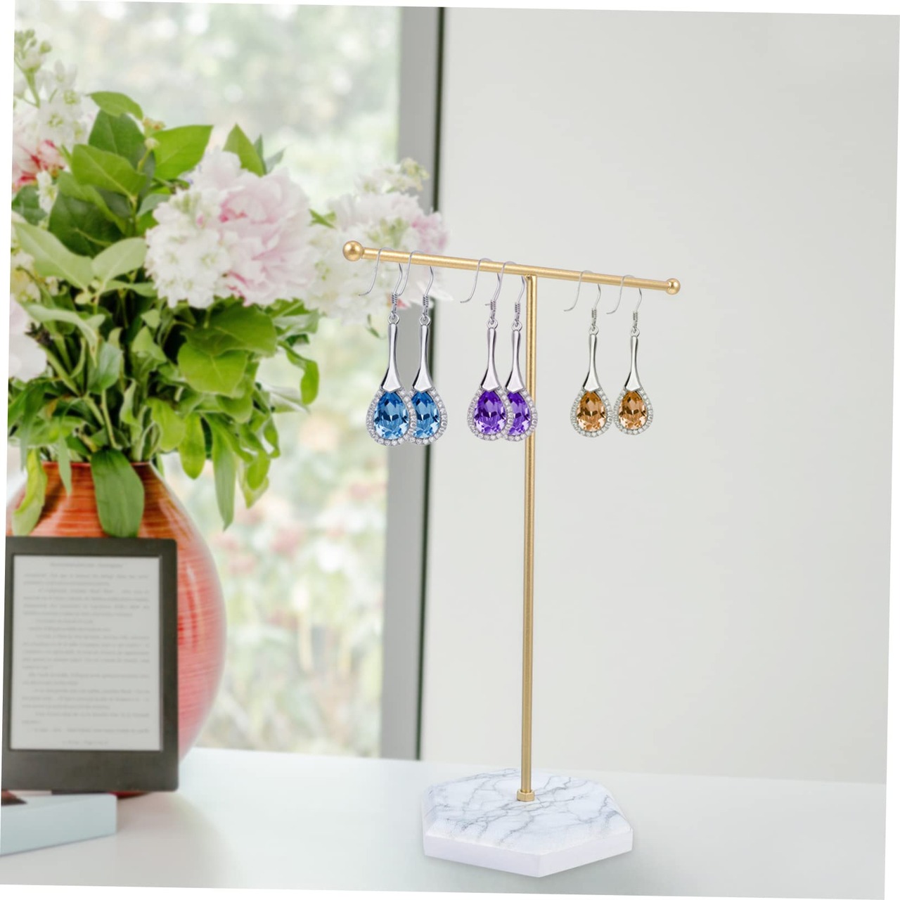 イヤリングスタンド:イヤリングディスプレイスタンド、メタルイヤリングtバースタンド、大理石ベースジュエリーホルダーツリースタンド、カウンタートップ吊り下げジュエリーラックオーガナイザー、ネックレスブレスレット用。