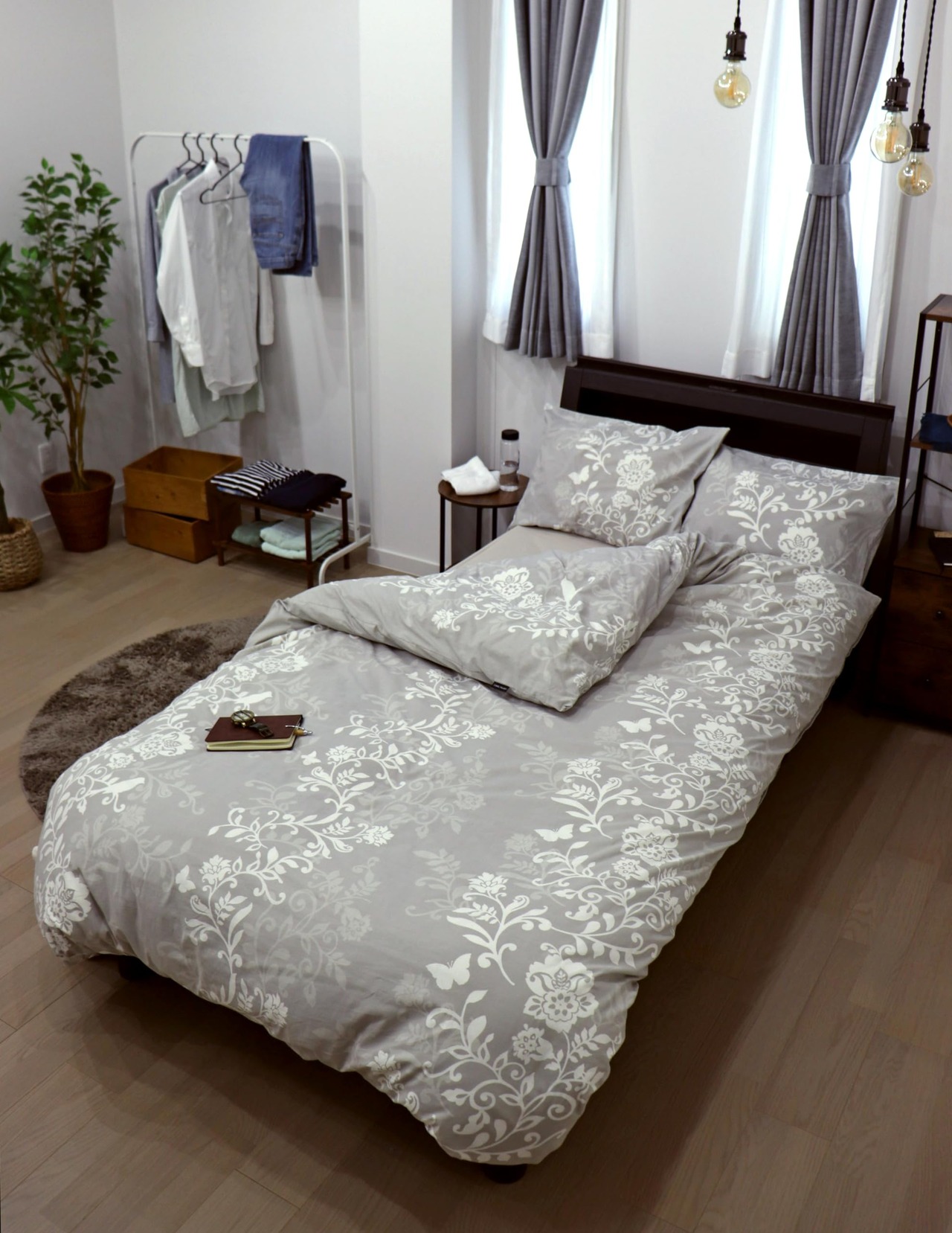 CAMEL PALMS 日本製 綿100% まくらカバー ピローケース ファスナー式 35×50cm シルエットフラワー グレイ