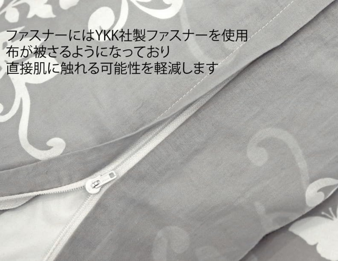 サイズ 35cm×50cm ピローケース(YKK社製ファスナー式)。吸汗性に優れた綿100%平織り生地を使用。薄手の生地で、サラッとした肌ざわりです。内側インターロック(かがり縫い+ステッチ)縫製仕様です。日本製。