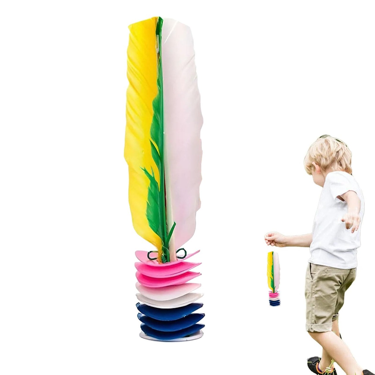 ベトナム製 素材:高品質のカラフルな羽で作られています。 ベースは多層の環境に優しいゴム製で、高密度で弾力性に優れています。