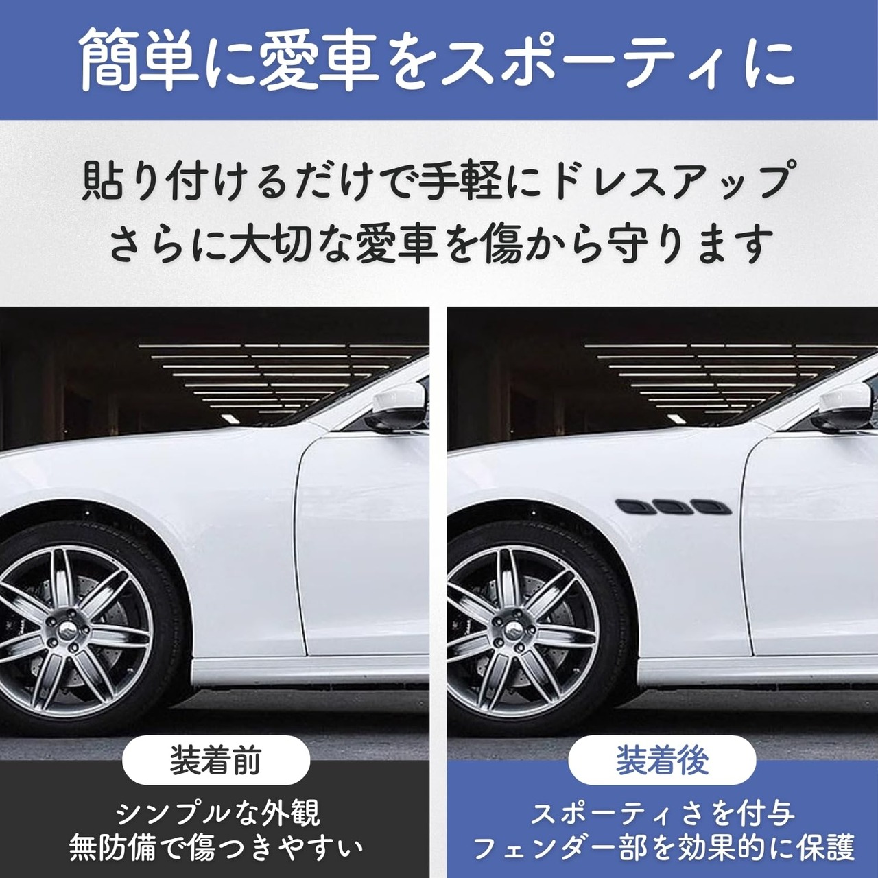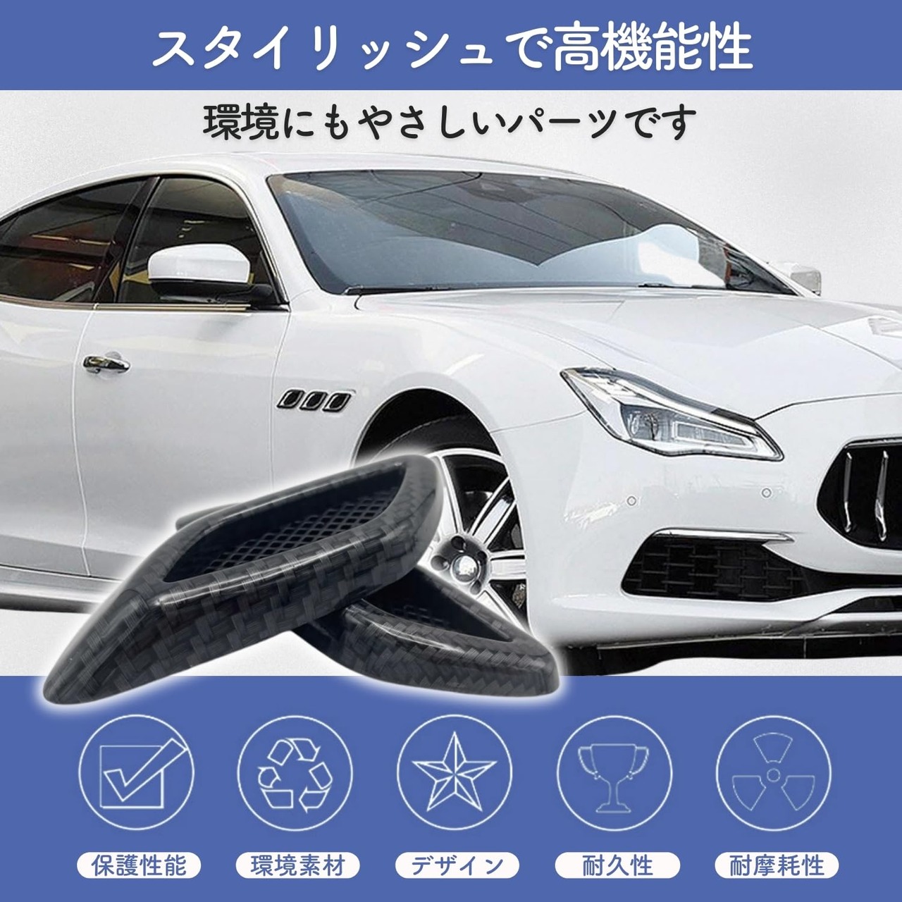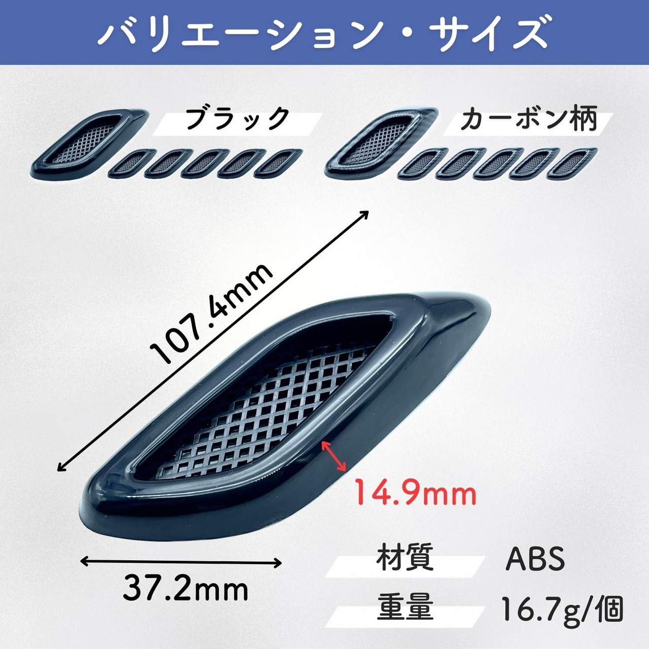 このガーニッシュアイテムは、小さめアイテムのためお車のサイドやボンネットまたはドア周辺に貼り付け可能です。保護ステッカーとしてもどうぞ! 素材は軽量且つ耐久性に優れた高品質ABSプラスチックを使用しています。
