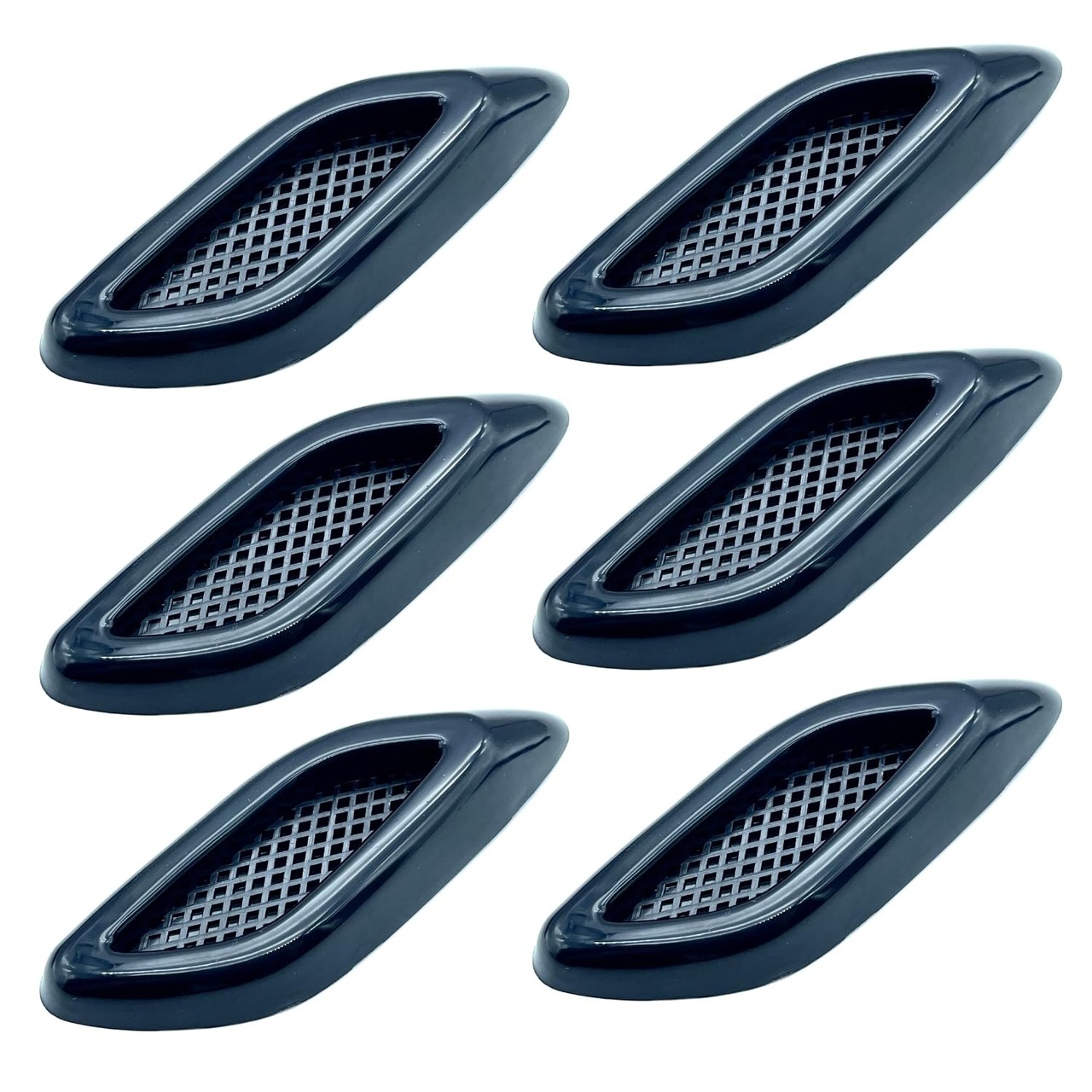 6個セットです。そのまま左右セットの3連車用ガーニッシュとして、個別で取り付けダミーのエアロパーツとして、またはリアに取り付けてリアダミーダクトとしてもお使いいただける汎用ドレスアップアイテムです。