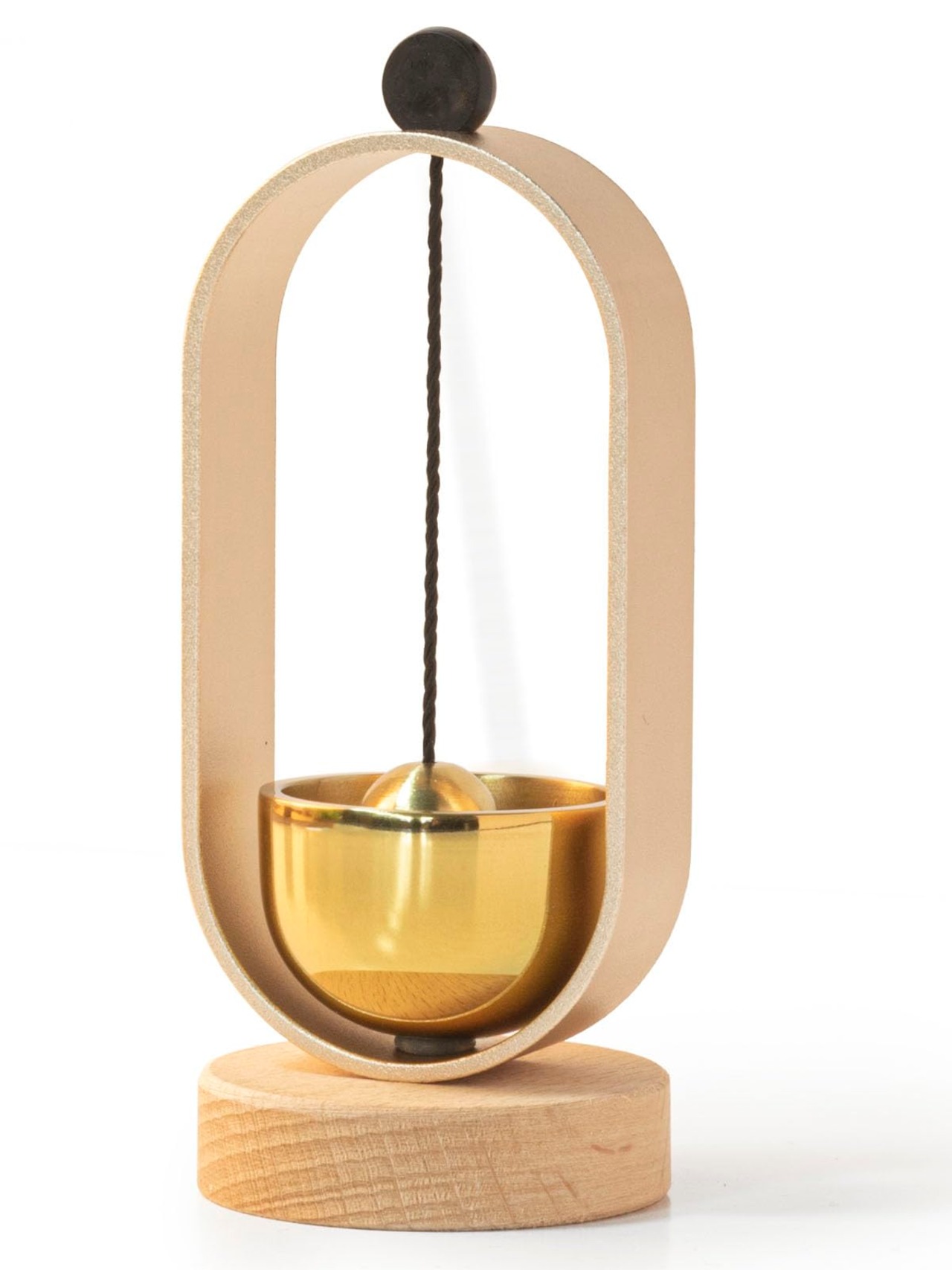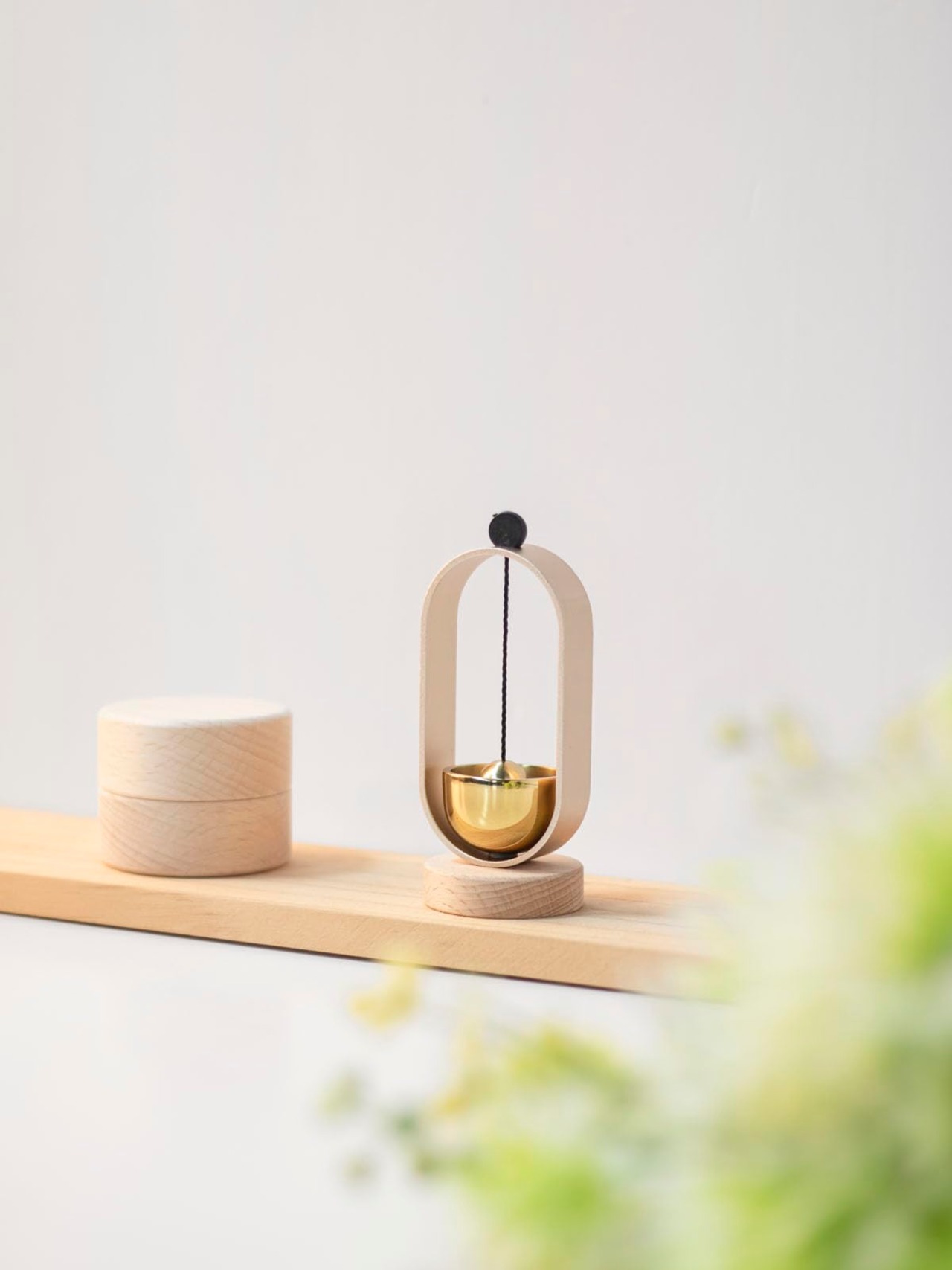 商品サイズ 高10cm × 直径4.0cm <br/> 材質:真鍮+アルミニウム合金+天然木 <br/> ※一品ずつ手作りのため、実際のサイズと若干異なる場合がございます。 <br/> ※実際の商品と色味が若干異なって見える場合がございます。 <br/> 仏具の「りん」は、お仏壇での祈りや供養に使用され、鳴らすことにより故人に祈りを届けるための仏具です。香炉や線香立てと並んで代表的な仏具であり、あらゆる方になじみの深い仏具ではないかと思います。 <br/> 天然の木の色はアート。 下部が木製なので、敷布がない場所でも気兼ねなく置くことができます。 <br/> 現代的でモダンなお仏壇やリビングにも馴染むよう、コンパクトで落ち着いたデザインとなっております。伝統的な仏壇はもちろん、モダン仏壇、仏間、リビングなど場所を選ばず馴染むデザインです。<br/> 毎日気軽に使っていただける仏具です。