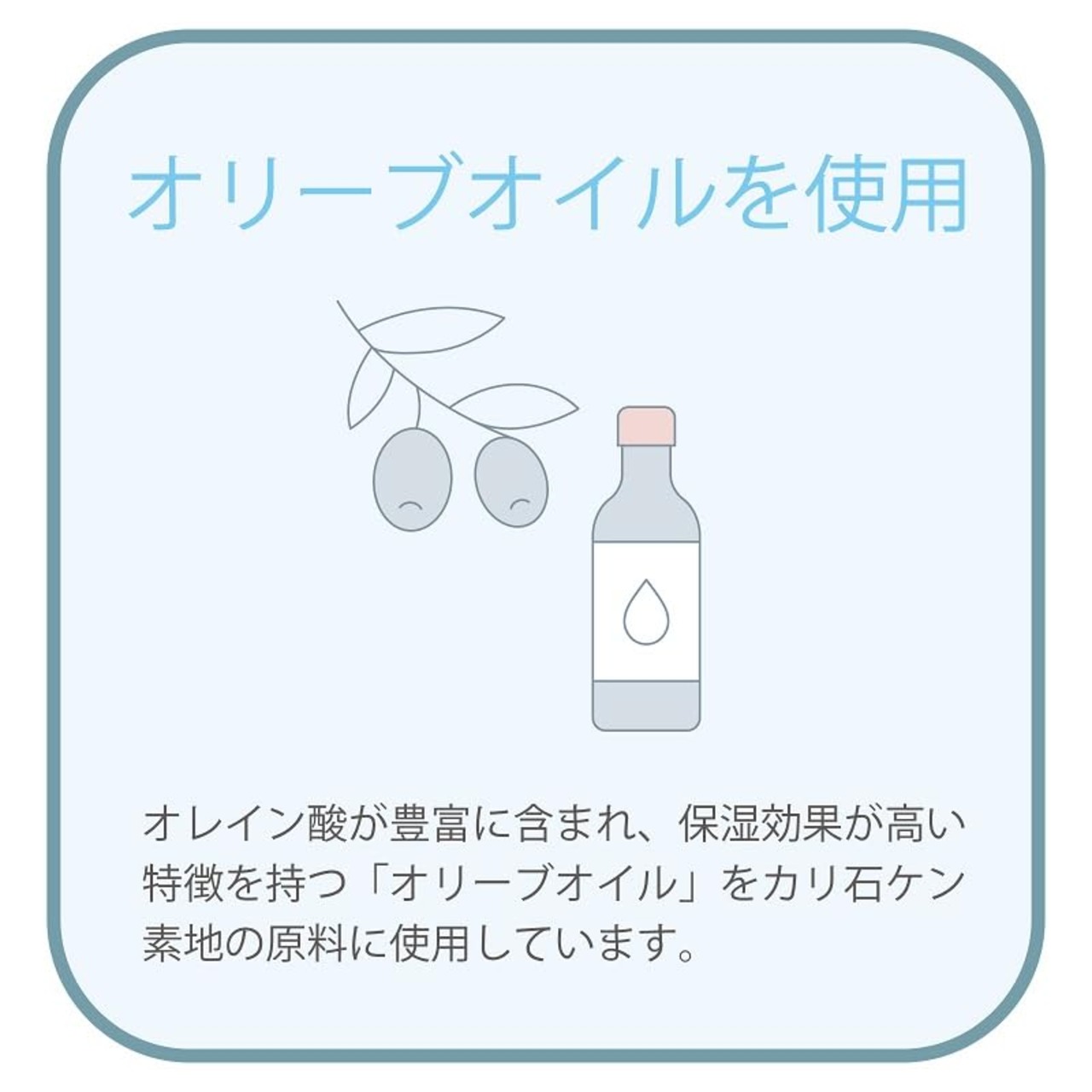 オレイン酸が豊富に含まれ、保湿効果が高い特徴を持つオリーブオイルをカリ石けん素地の原料に使用。