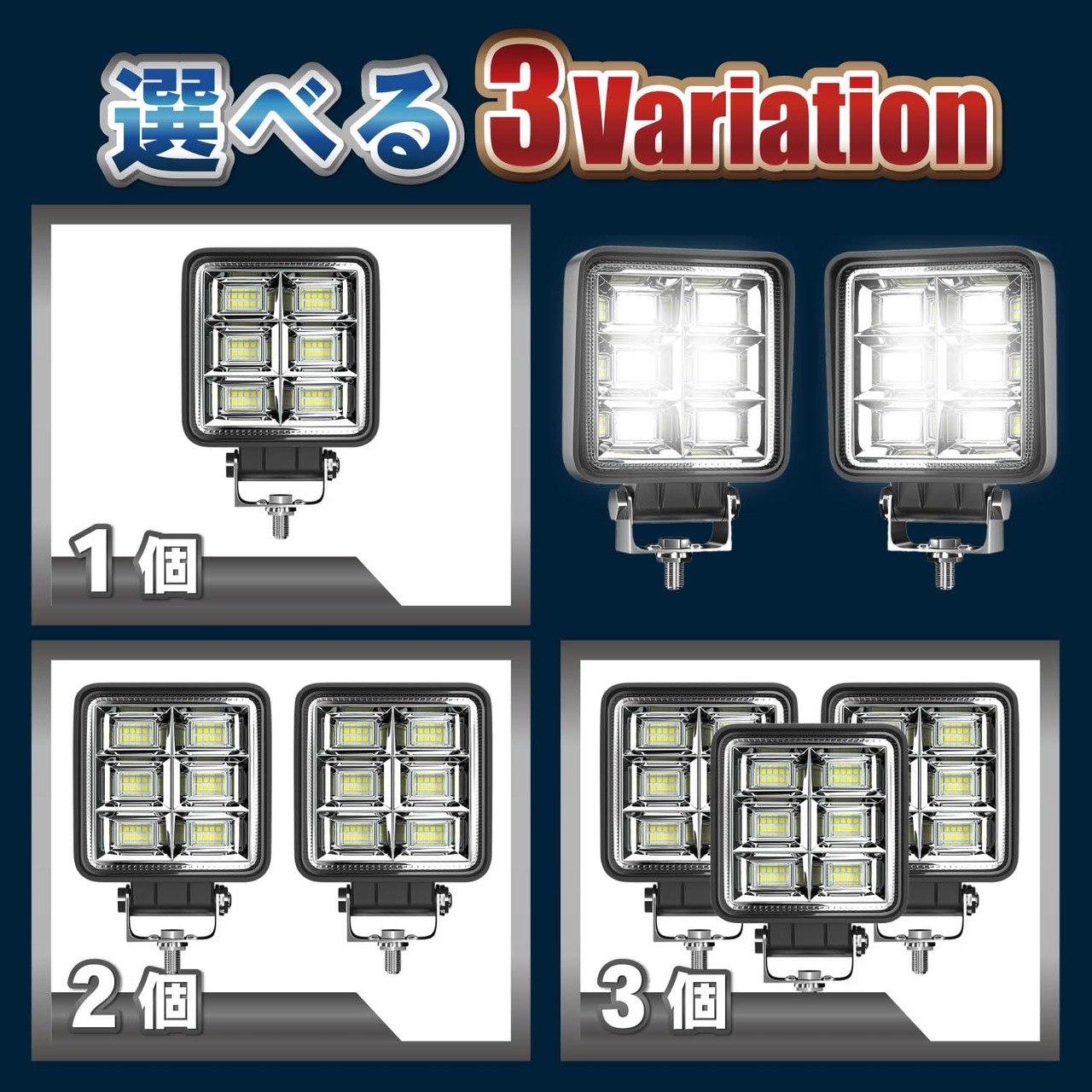 サイズ(約):10.8×10.8×2.8 cm / 発光色:ホワイト(白) / 動作電圧: 12v-24v DC / 消費電力: 144W / 防水性能:IP 67 / 色温度: 6500K / ルーメン:8000lm / 使用可能温度:-40~80℃ / LEDバルブ寿命:50000時間以上 / セット内容:ワークライト本体、ステー&ネジ×2式