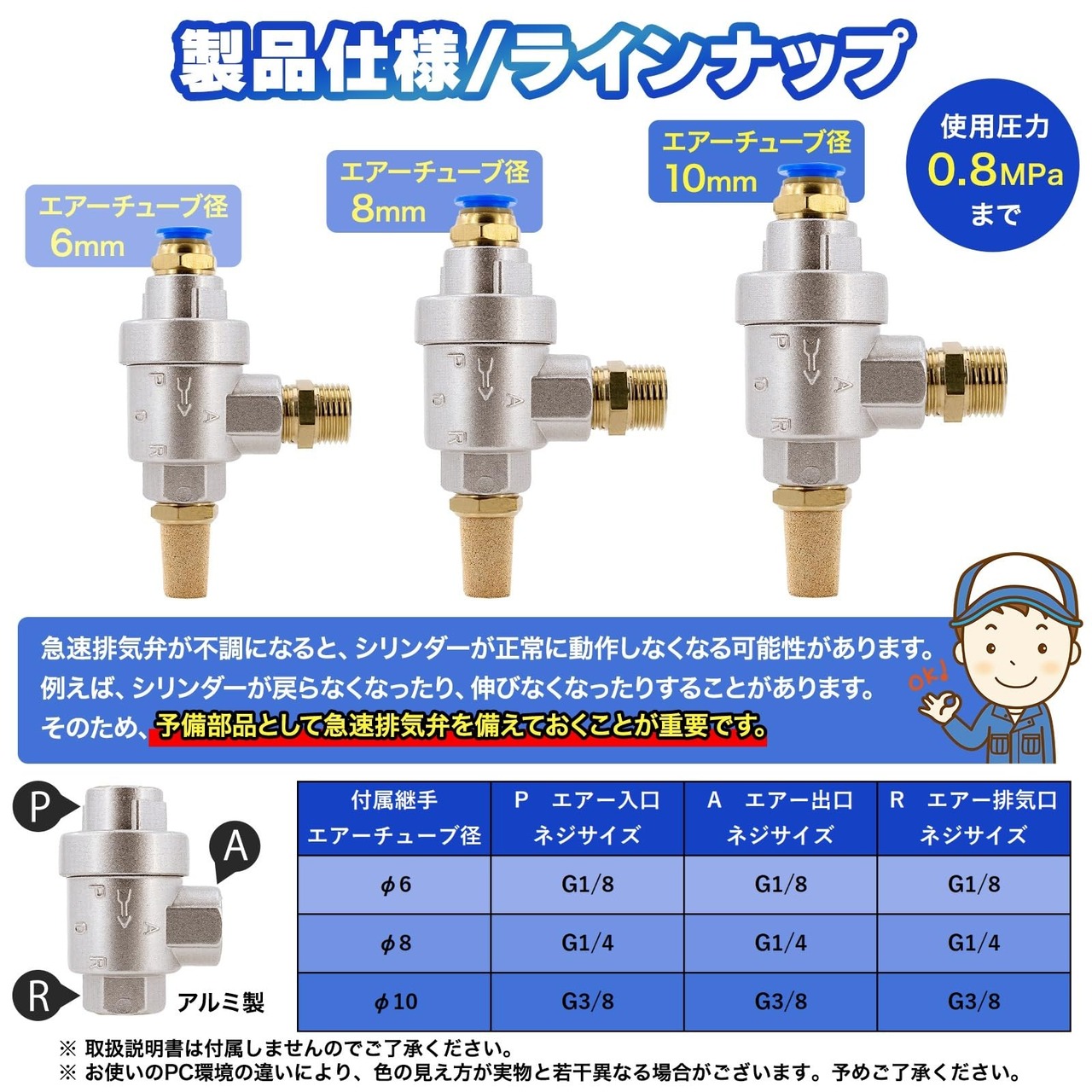 Morisho タイヤ チェンジャー ビード ブレーカー エアー 急速 排気 弁 クイック エキゾースト リリーフ バルブ シリンダー 解放 車 部品 φ6