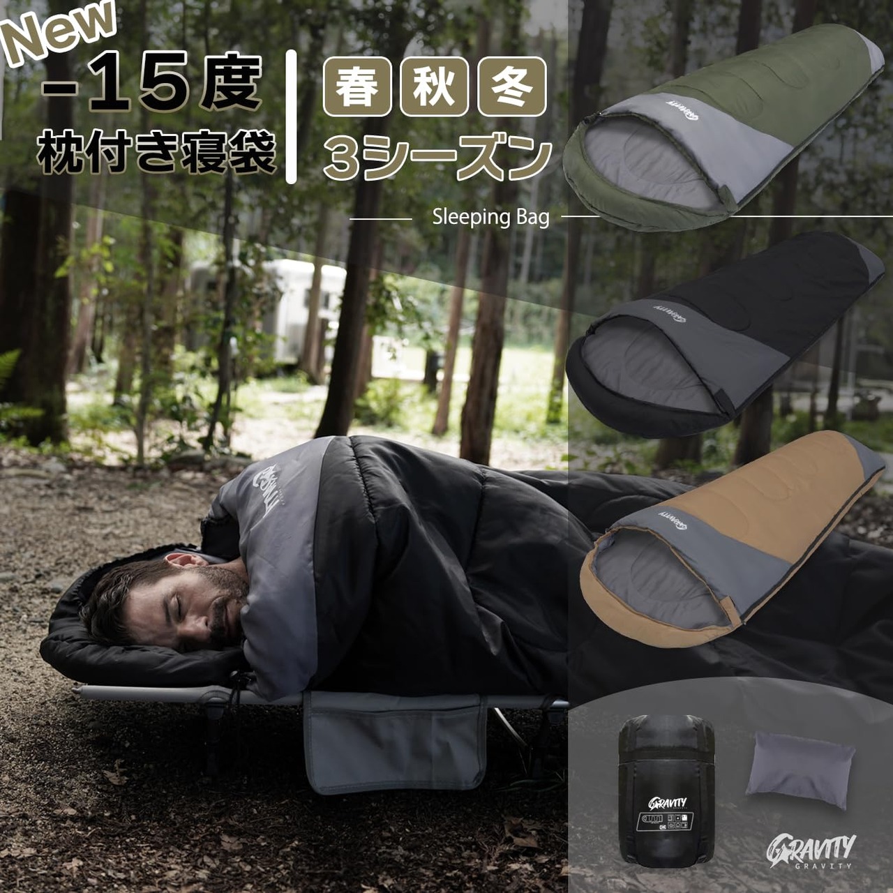 Alexilia (アレクシリア) 寝袋 シュラフ 枕付き コンパクト 冬用 限界使用温度-15度 (コヨーテ)