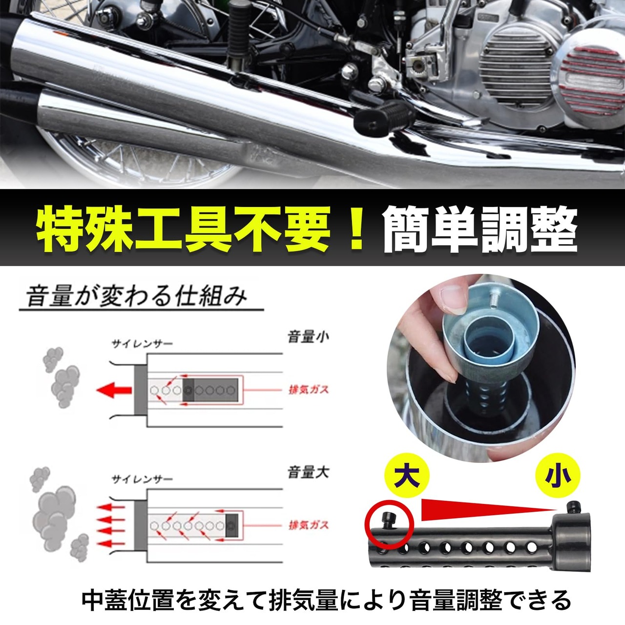 ✅【静粛性とパフォーマンスを両立】 モータースポーツ愛好家にもピッタリのインナーサイレンサー。音量調整機能により、レーストラックから市街地まで、あらゆる環境で最適な走行音を実現します。取り外し可能で、取り付けも簡単なこの製品は、あらゆるオートバイにフィットする汎用型で、バイクの消音やカスタムに最適です。