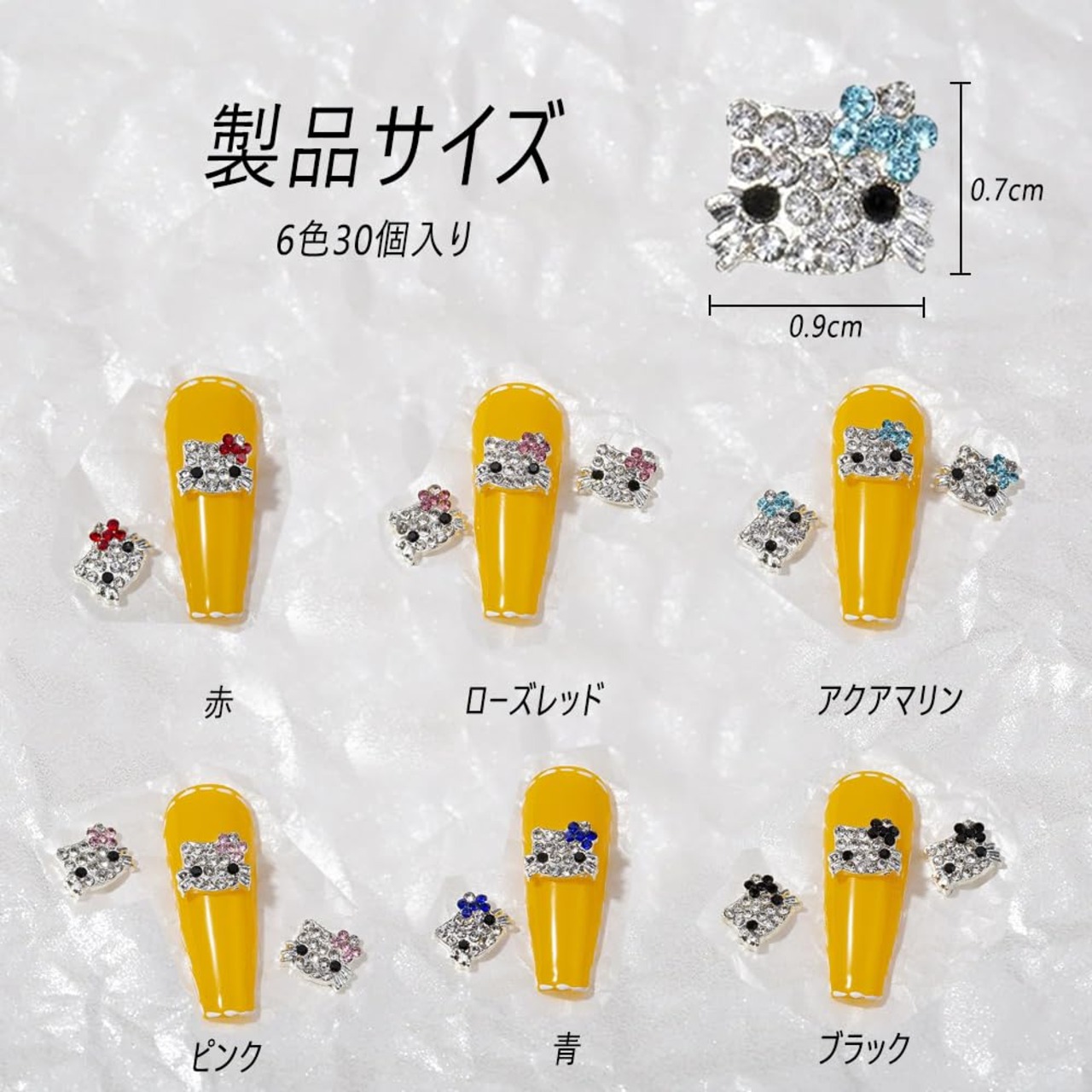 YACHUN ネイルパーツ キティ 可愛い 3D 立体 デコパーツ 30個セット メタルパーツ キラキラネイルジュエリーパーツ DIY ネイル デコパーツ 手芸 ハンドメイド ネイルデザイン(6種類)