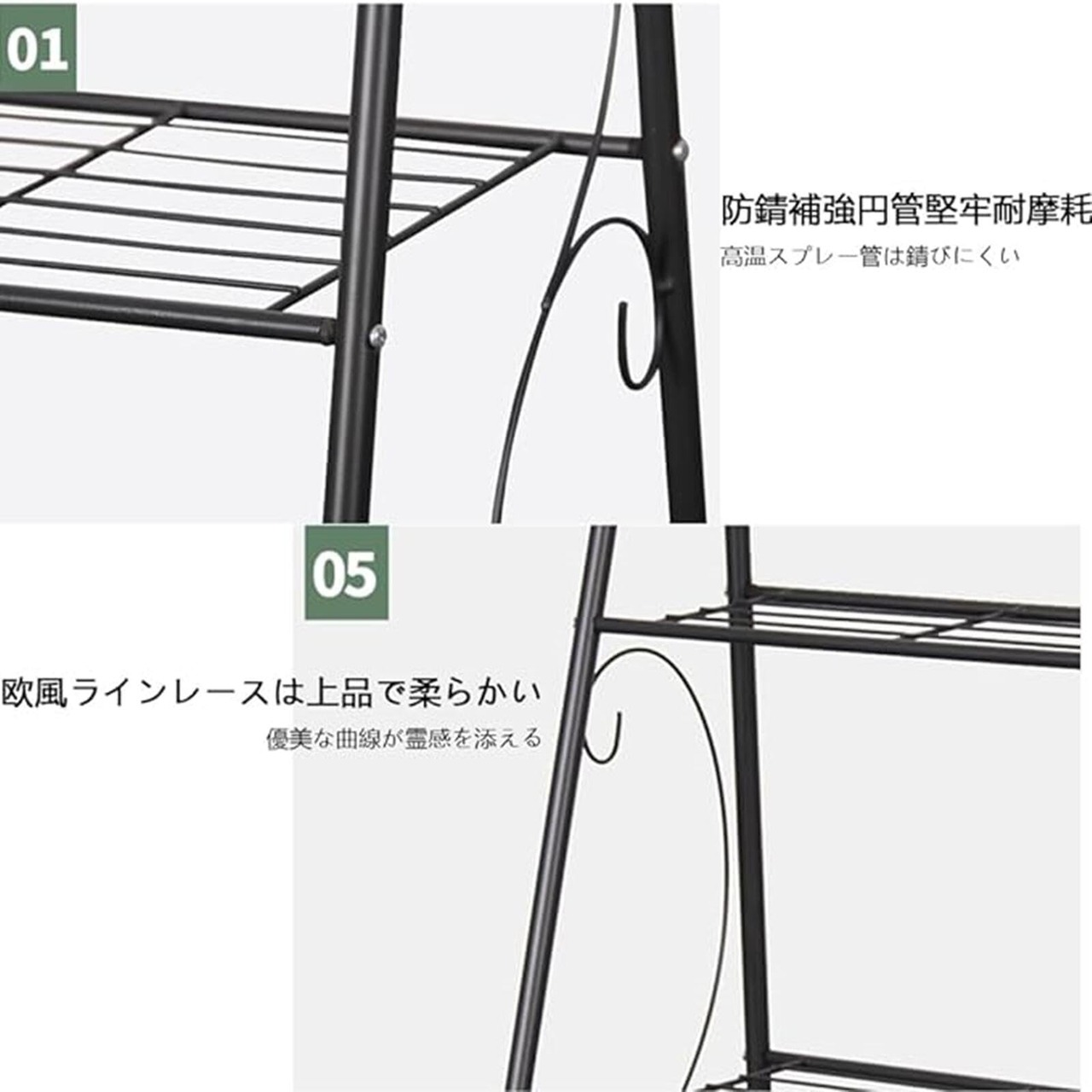 ❤【耐久性&錆防止】このガーデンラックは幾何学の基礎の上で、全体は上質な金属と精致な工芸を採用して、シンプルでスタイリッシュです。ガーデンラックはステンレスで作られて、スリムけれど丈夫、どこでもお使いいただけます。優れたペイント工芸を使用し、木製の植物スタンドよりもはるかに耐久性があります。